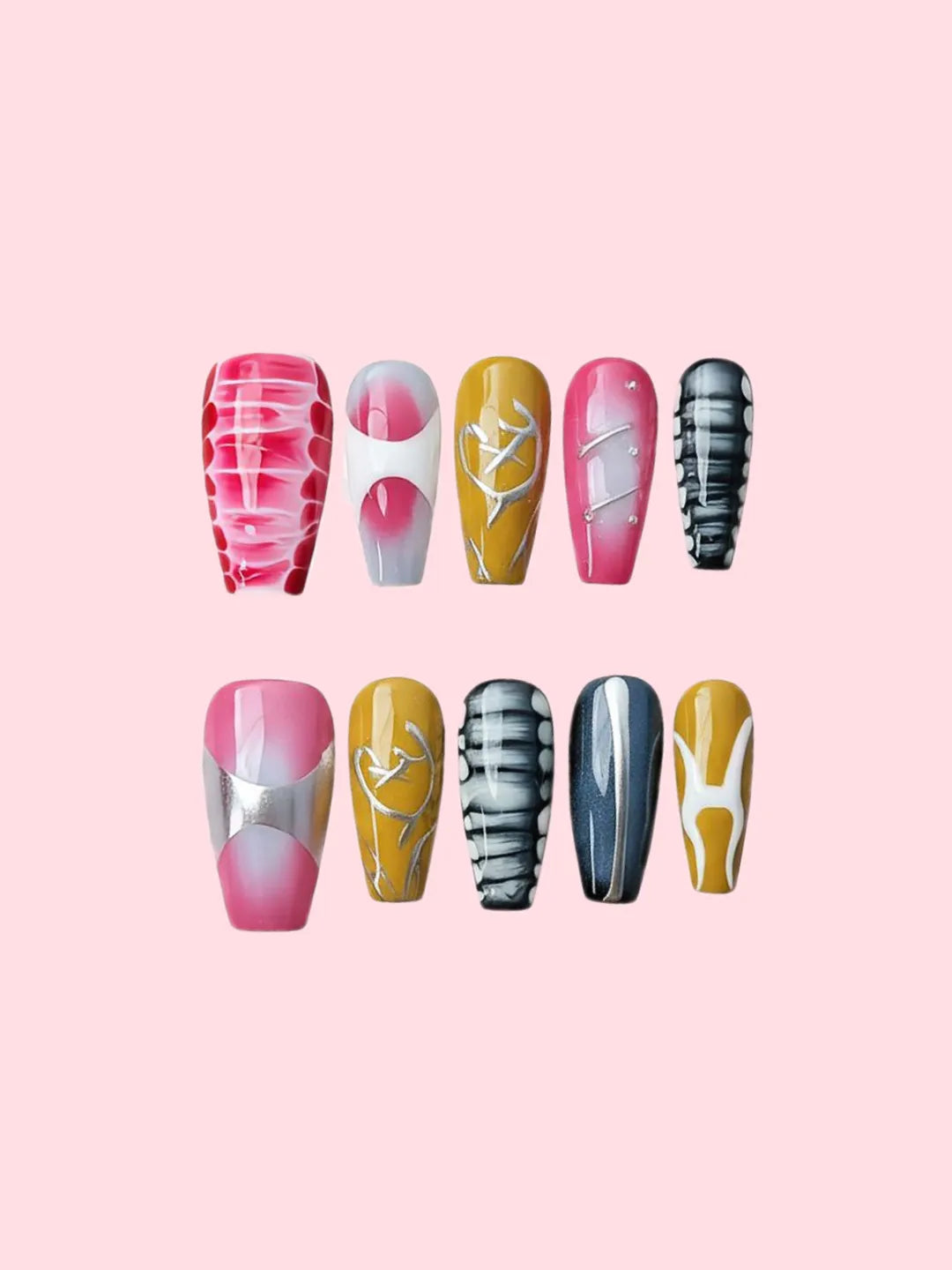 Autumn Haze nails feature a gentle blend of pink, gray, and yellow tones, like sunlight on a cool autumn day — soft, bright, and effortlessly elegant.