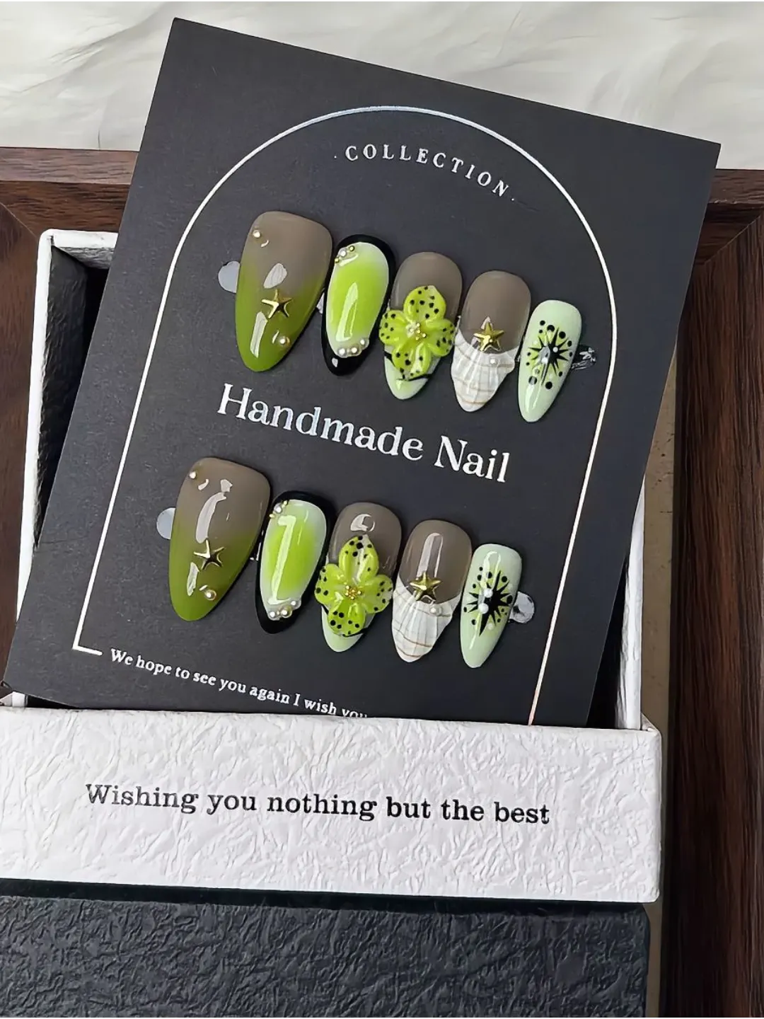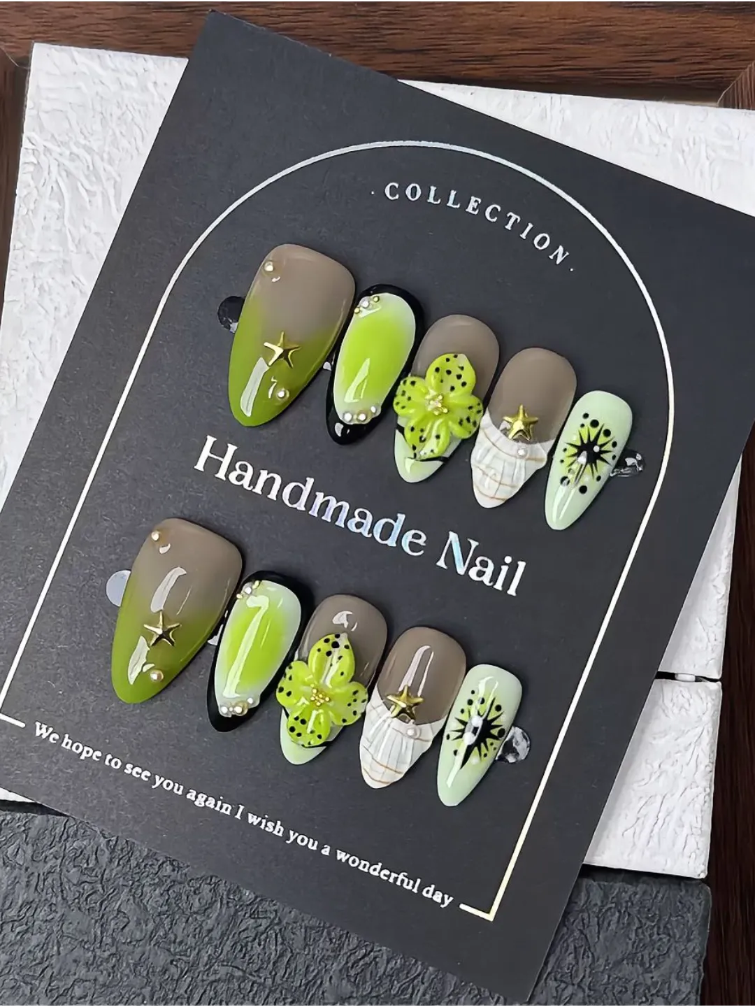 Bloom Gradient nails feature soft gradient tones combined with delicate 3D carvings, meticulously handcrafted. The layered design creates a refined and elegant look, perfect for everyday or romantic occasions.