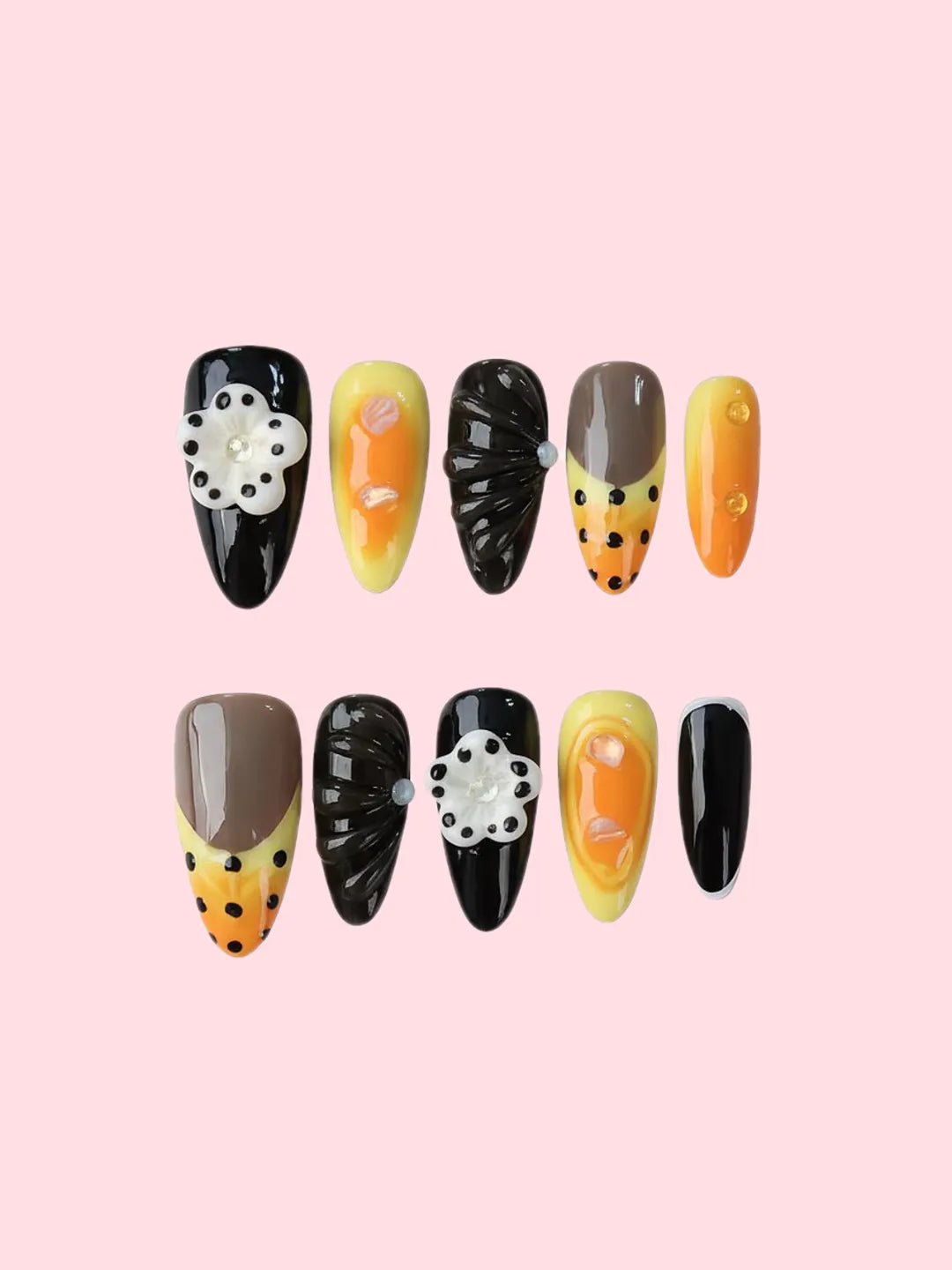 BUBBLE TEA BLOOM nails feature bubble tea gradient tones with handcrafted carvings, short and easy to wear, cute and playful, perfect for everyday or spring-summer date looks.