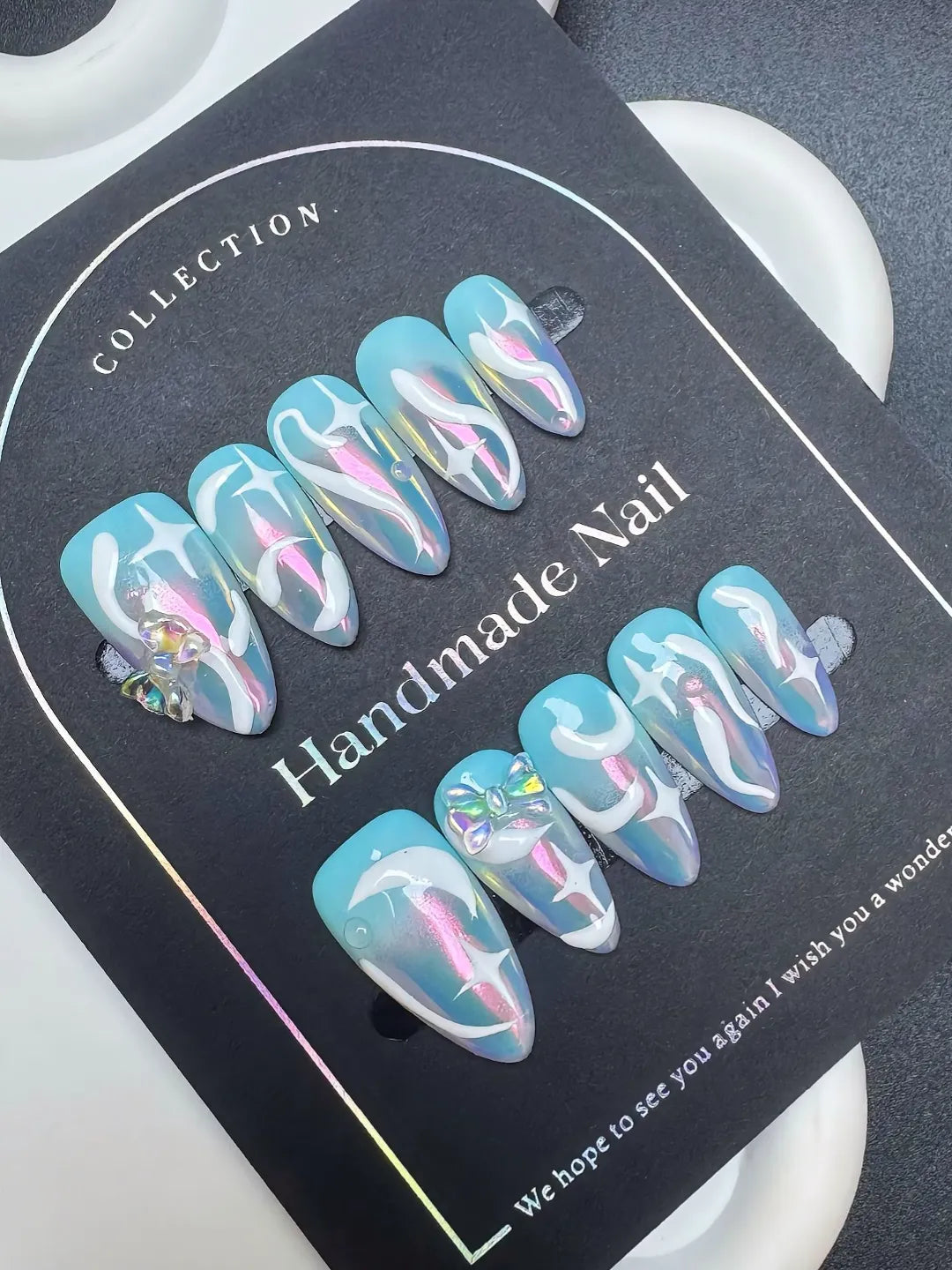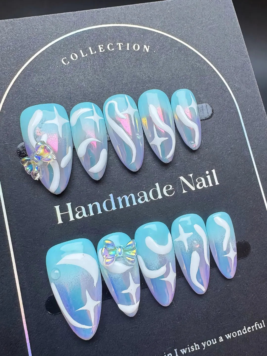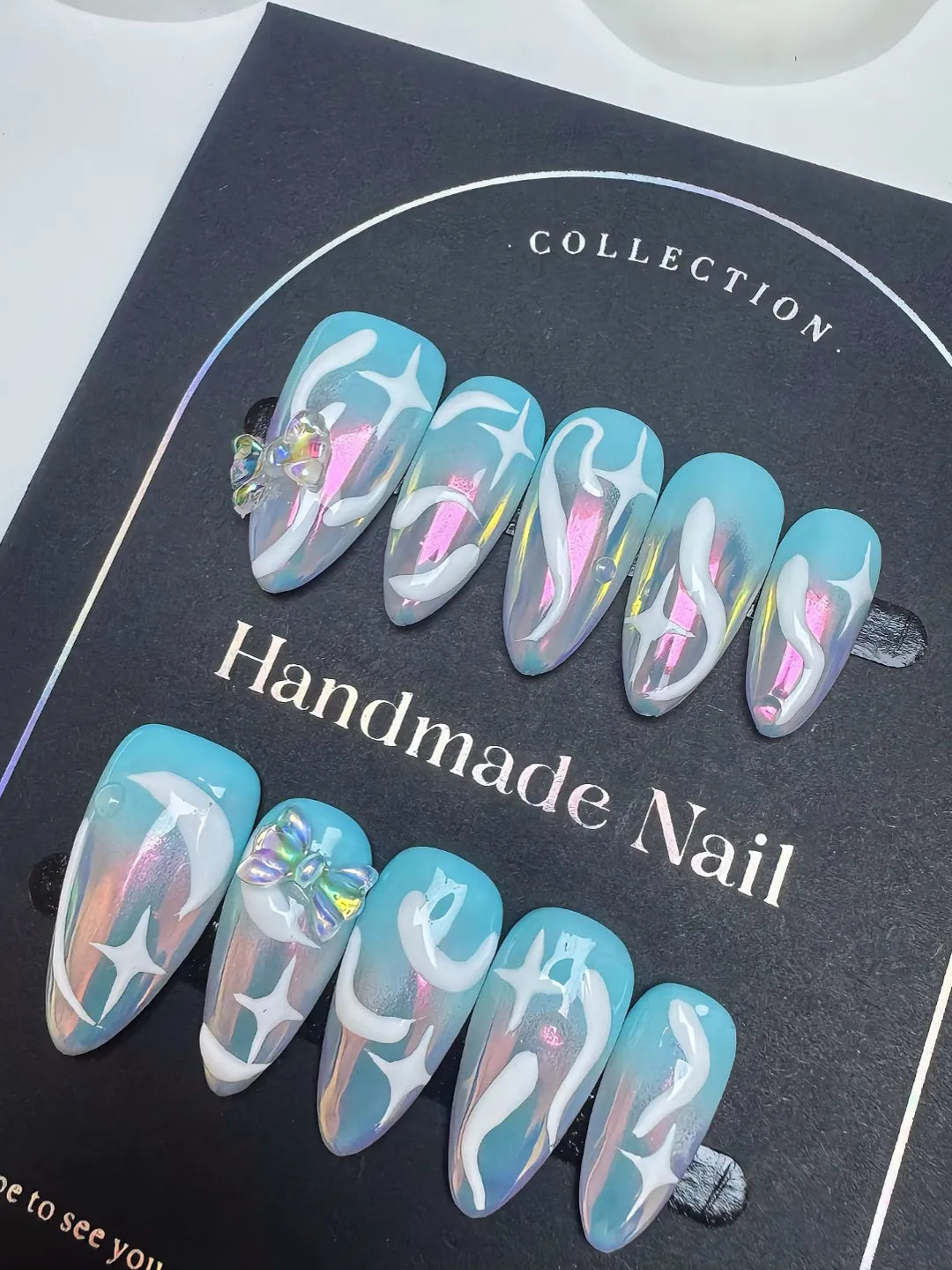 Handmade press-on nails with soft, glossy glaze and delicate shimmer. Elegant, dreamy, and perfect for a subtle yet luxurious look.