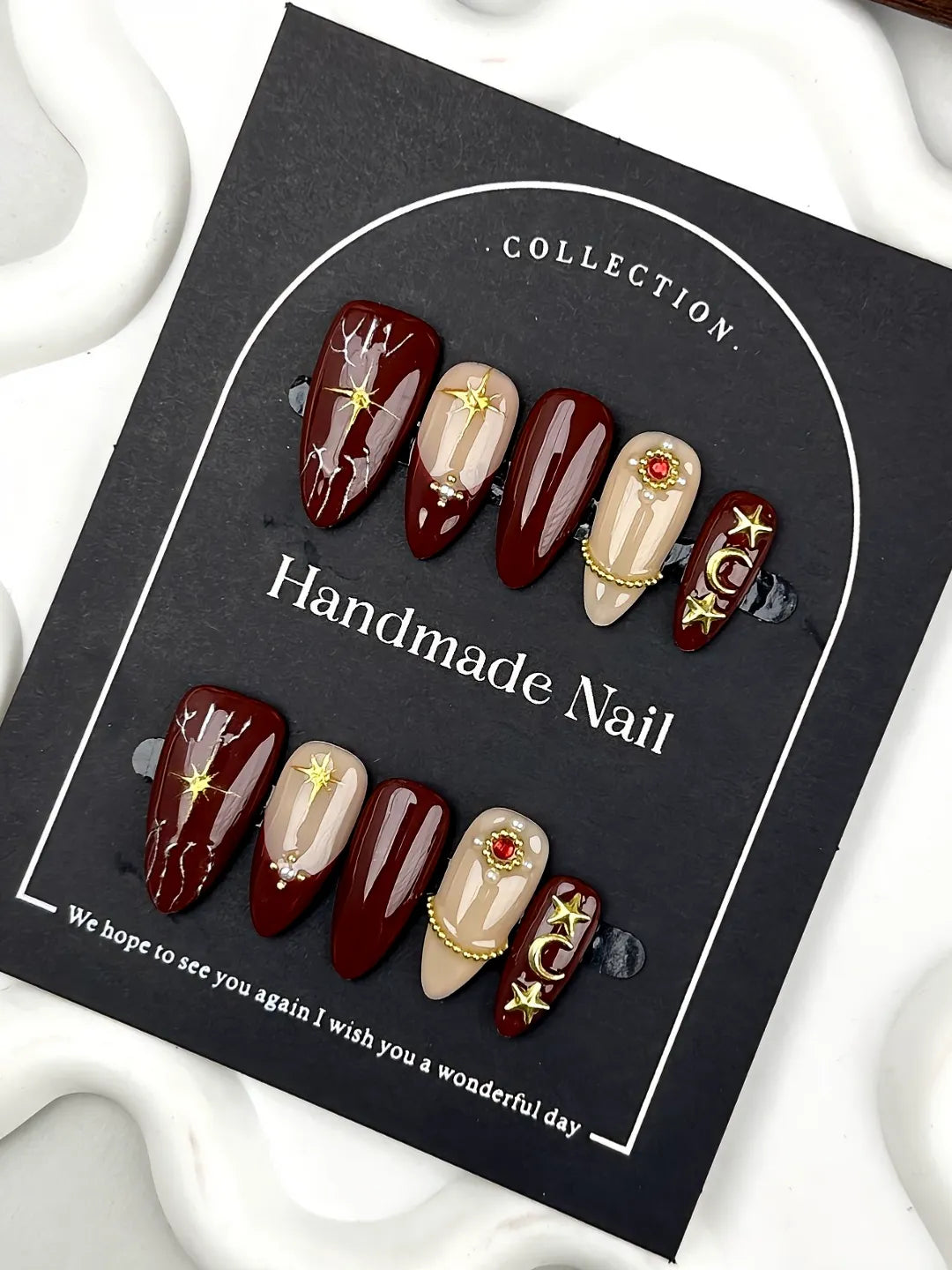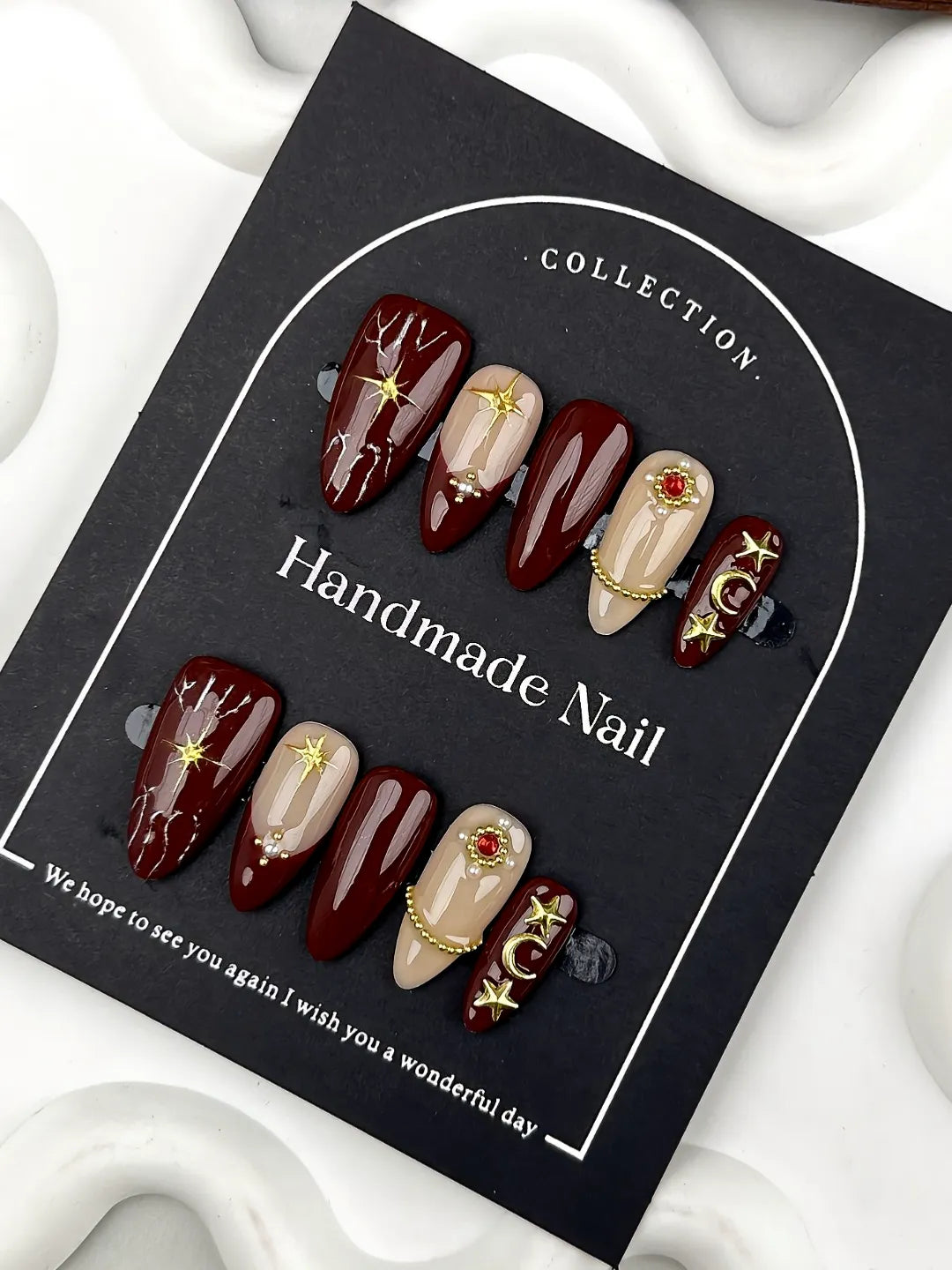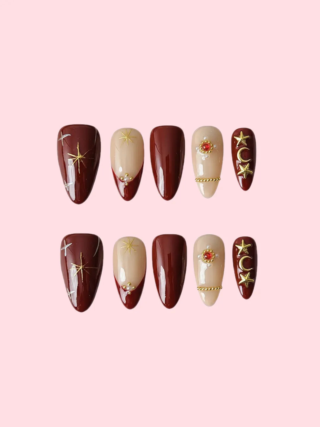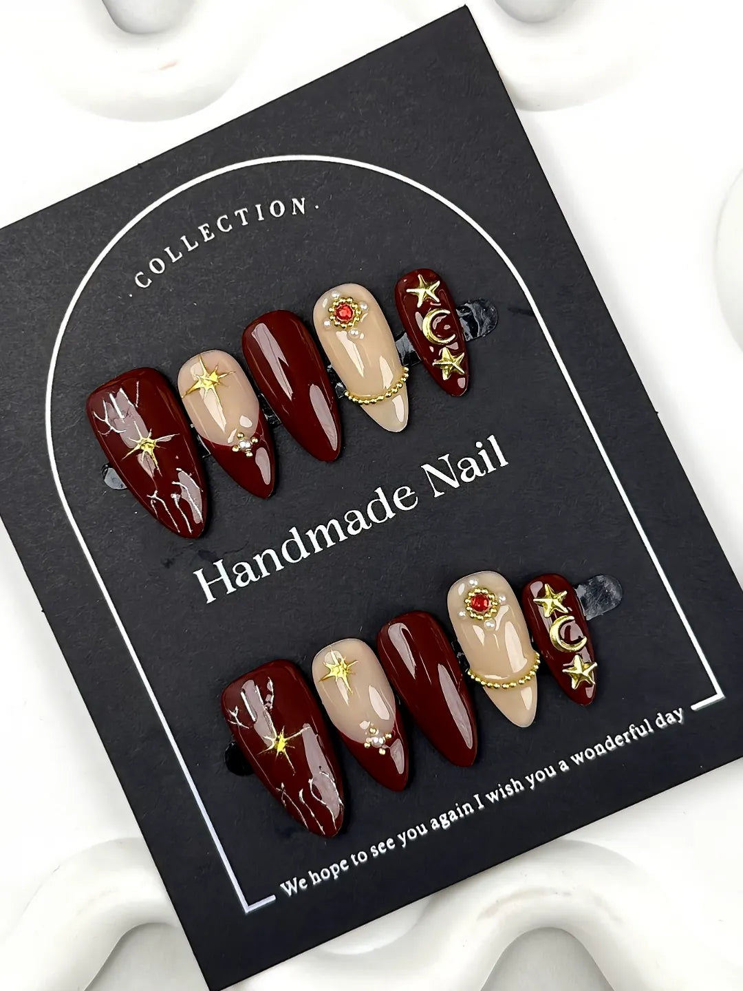 Handmade press-on nails with star designs, dreamy gradient, and jelly finish. Luxurious, whimsical, and perfect for unique, romantic looks.