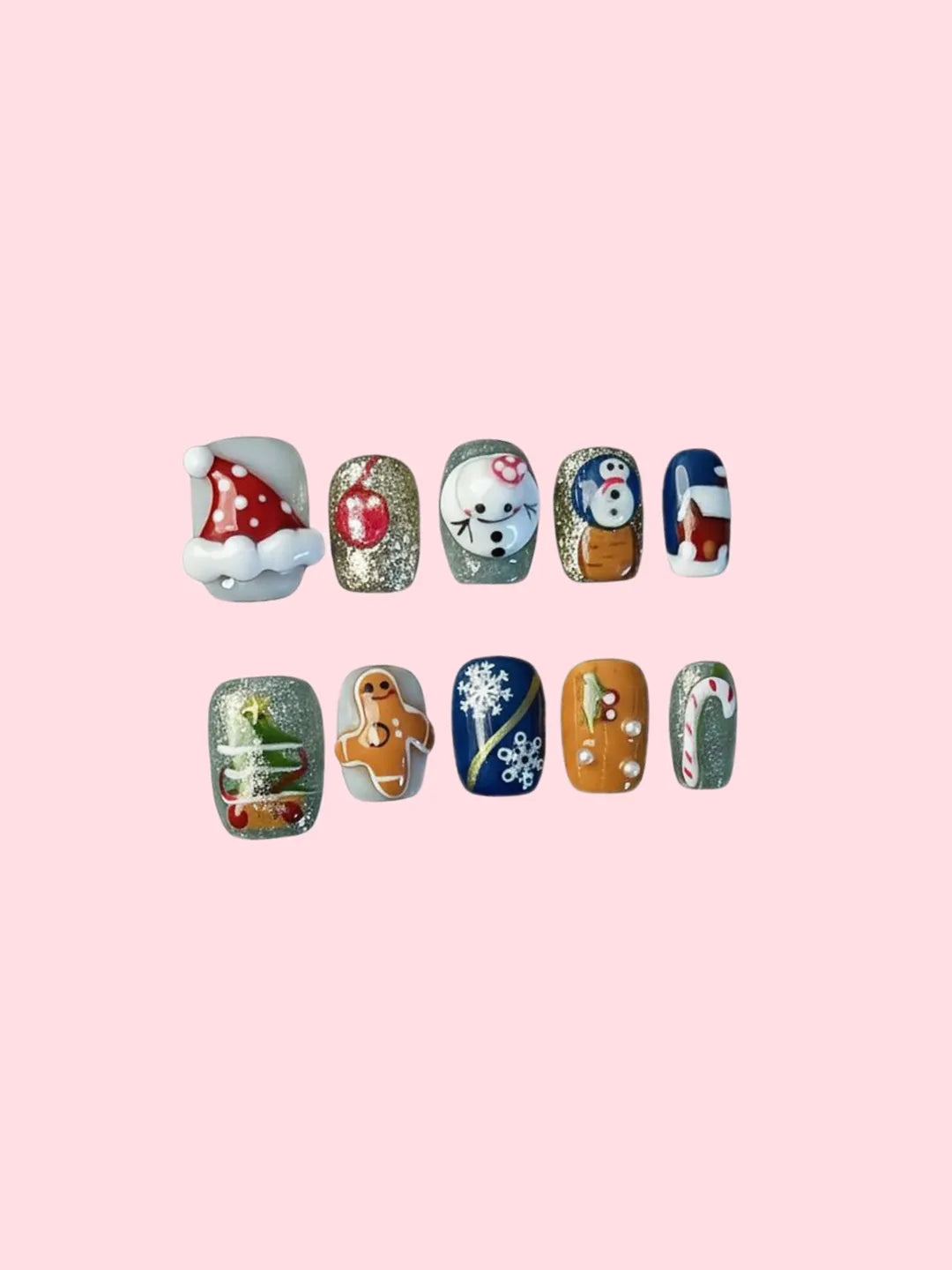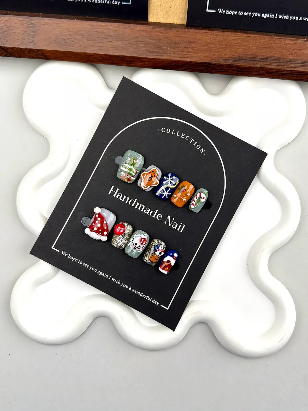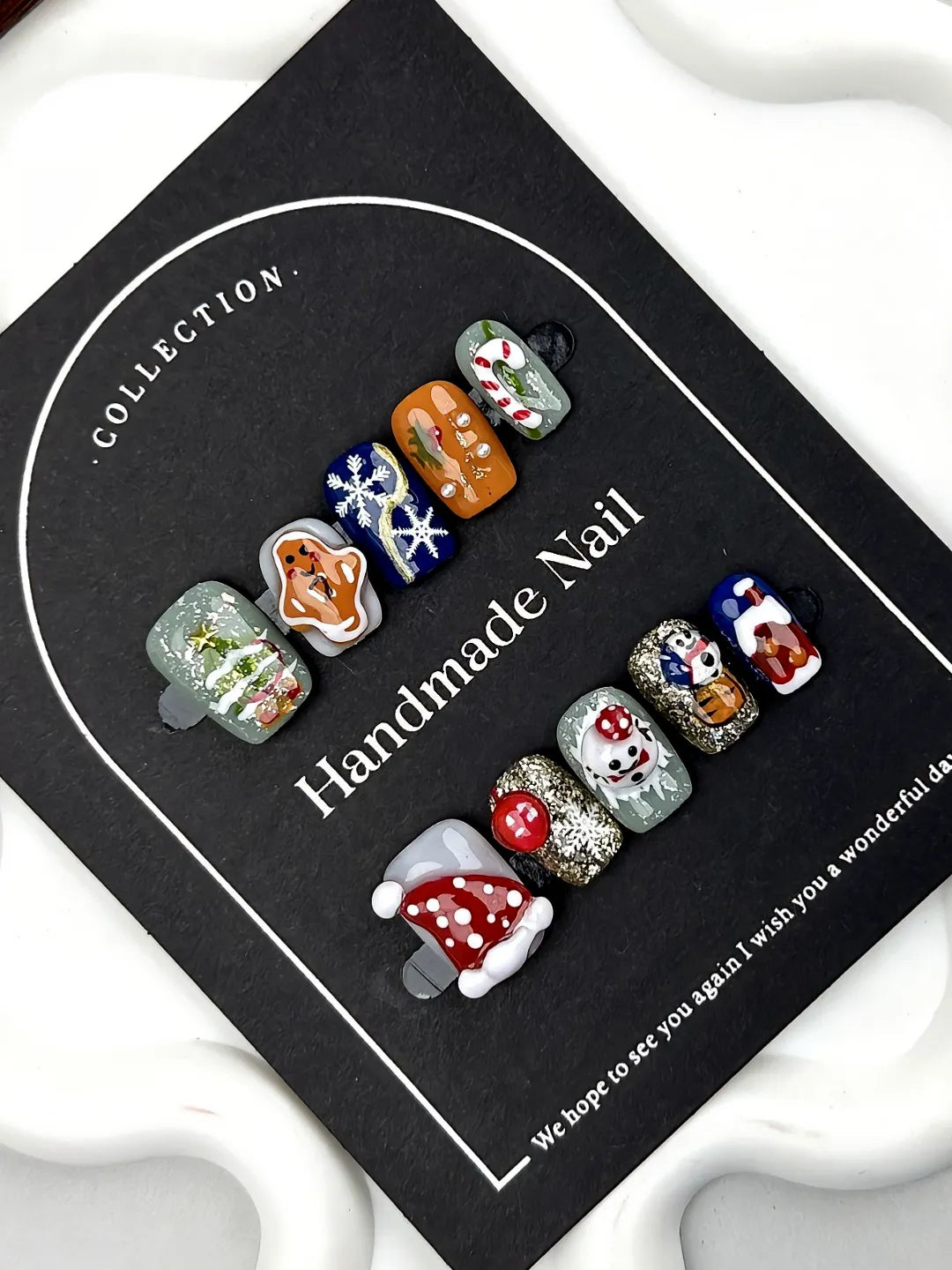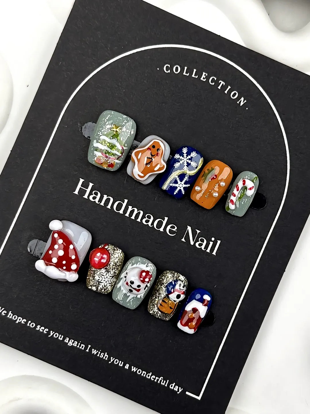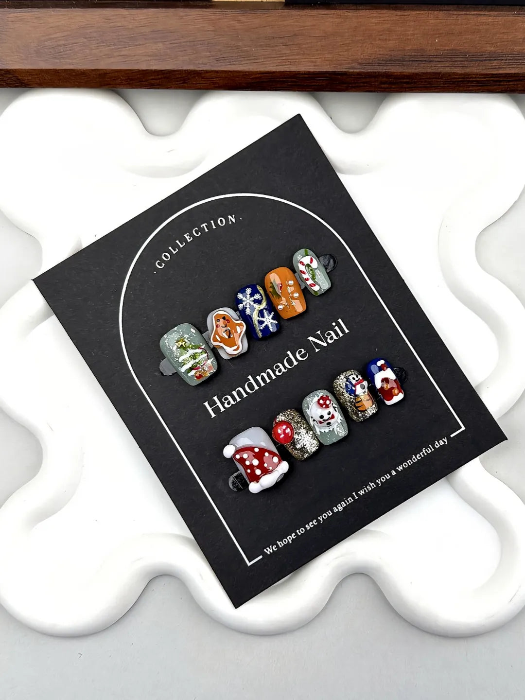 Handmade press-on nails with festive designs and glossy finish. Perfect for holiday parties, cheerful looks, and spreading Christmas spirit.