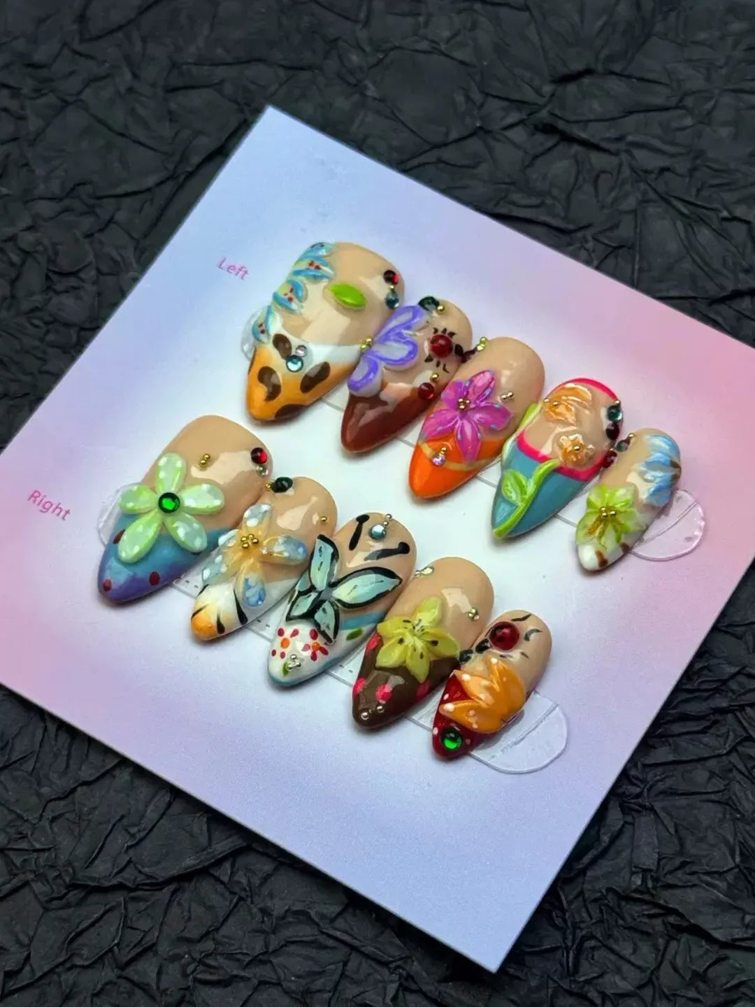 Spring Bloom nails, light and delicate, perfect for daily wear or dates, adding a touch of spring charm to your fingertips.