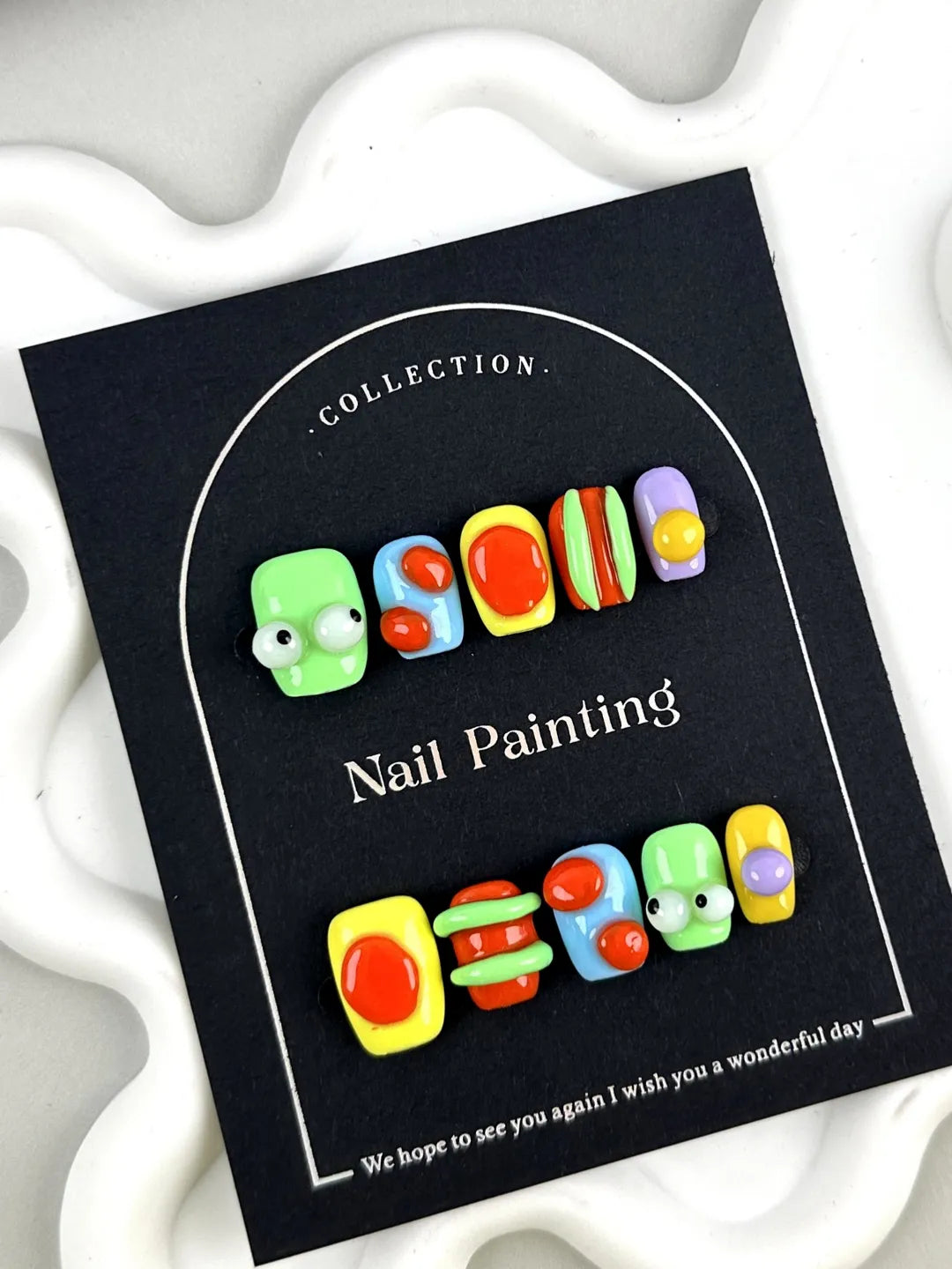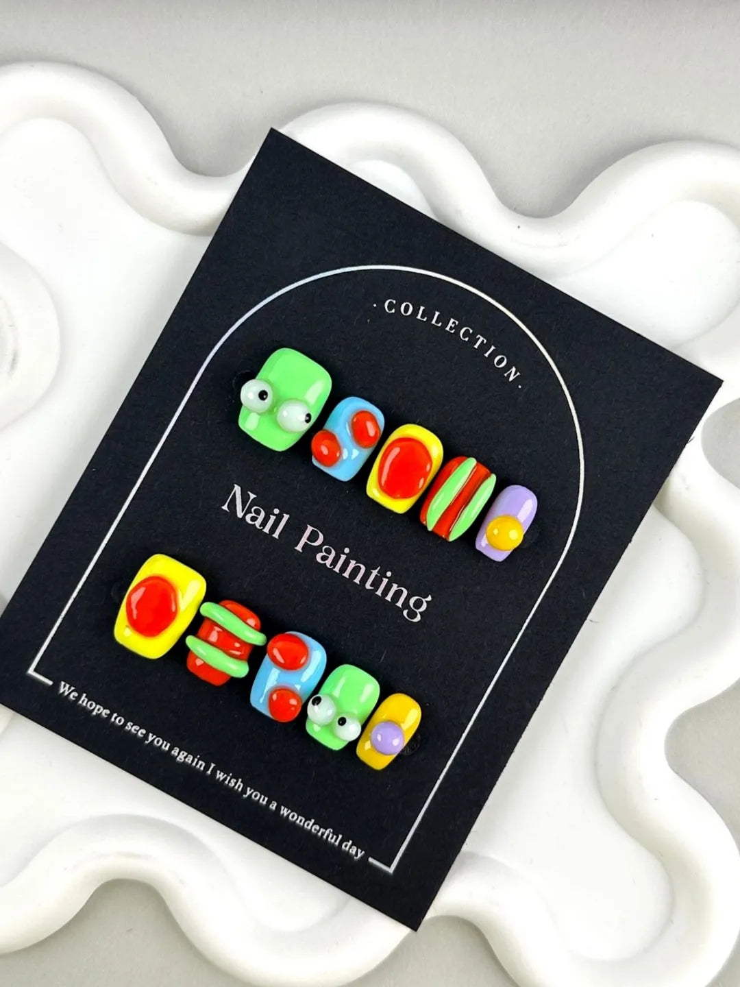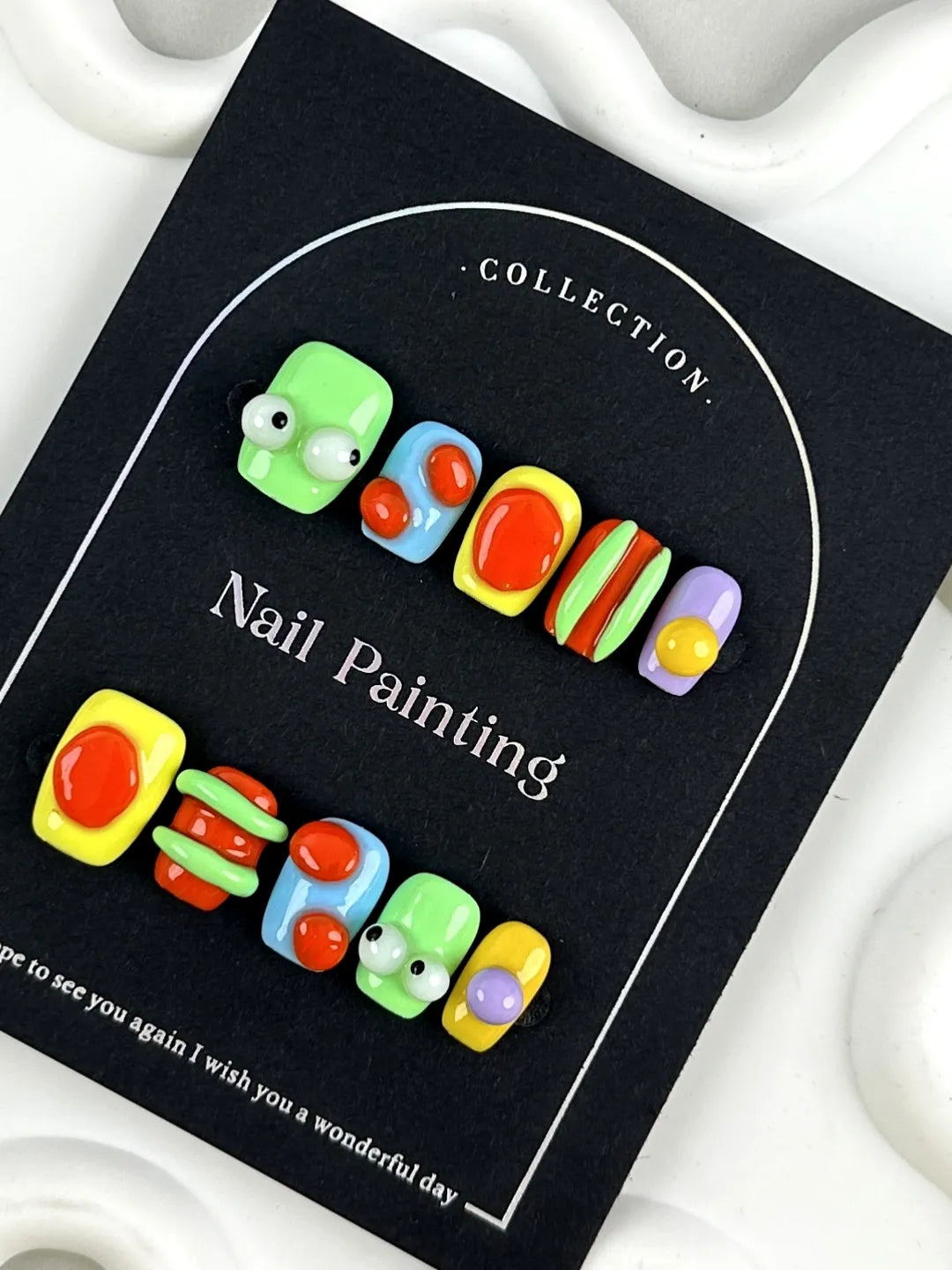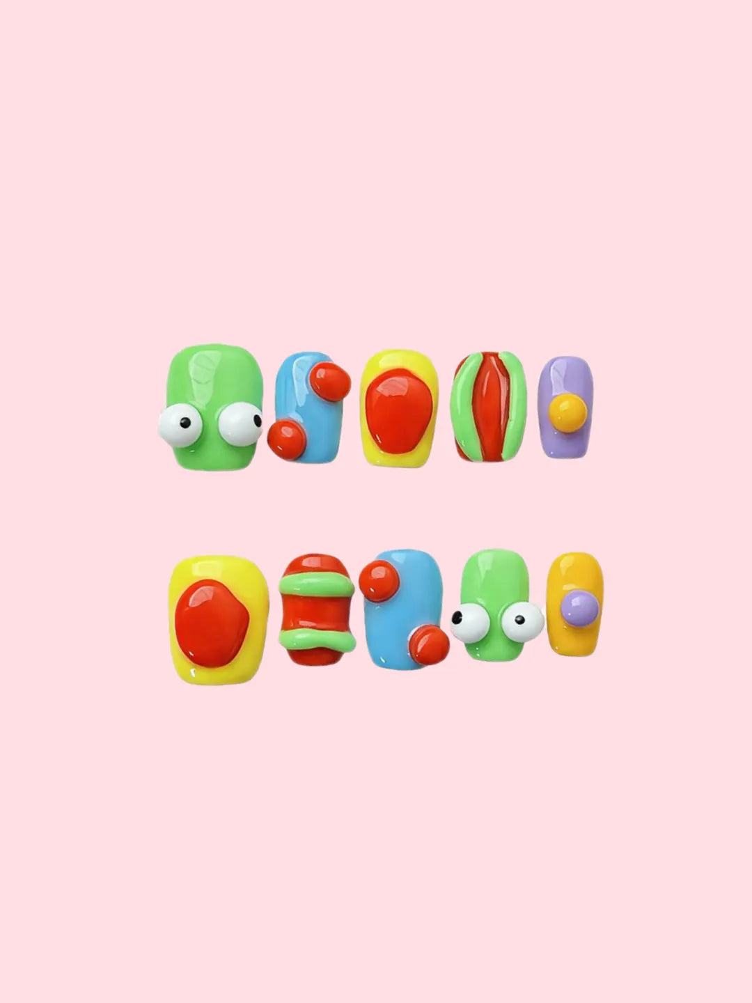 Color-block patterns mixed with quirky details — bold, stylish, and full of funky-girl attitude, perfect for parties or street looks.