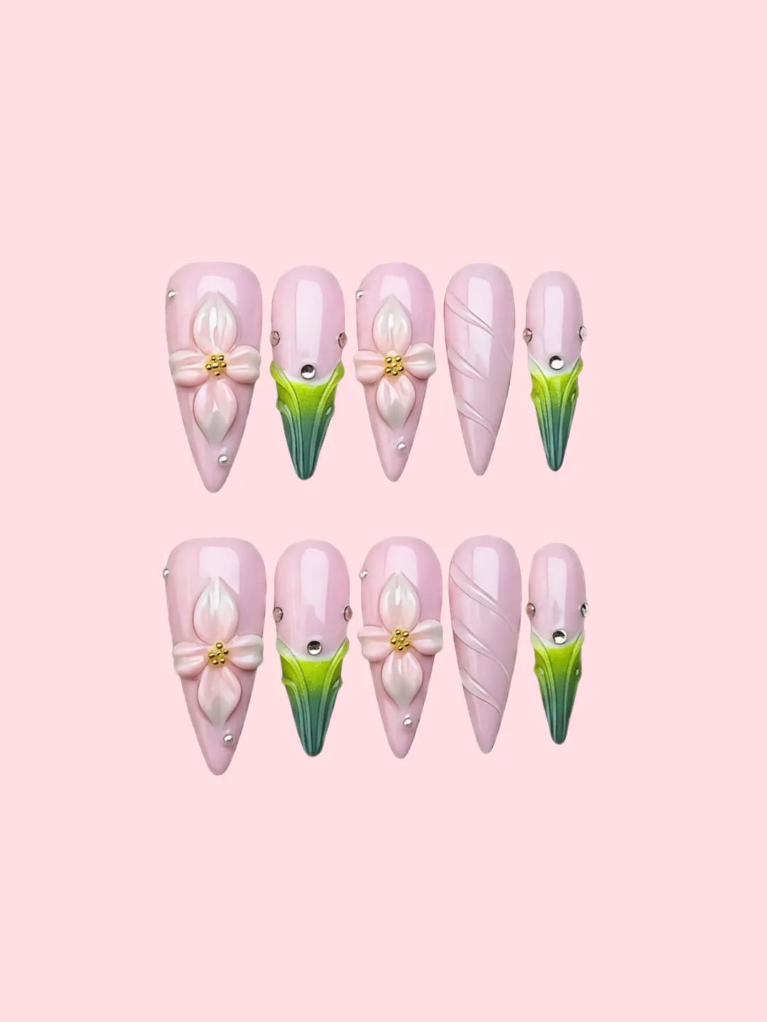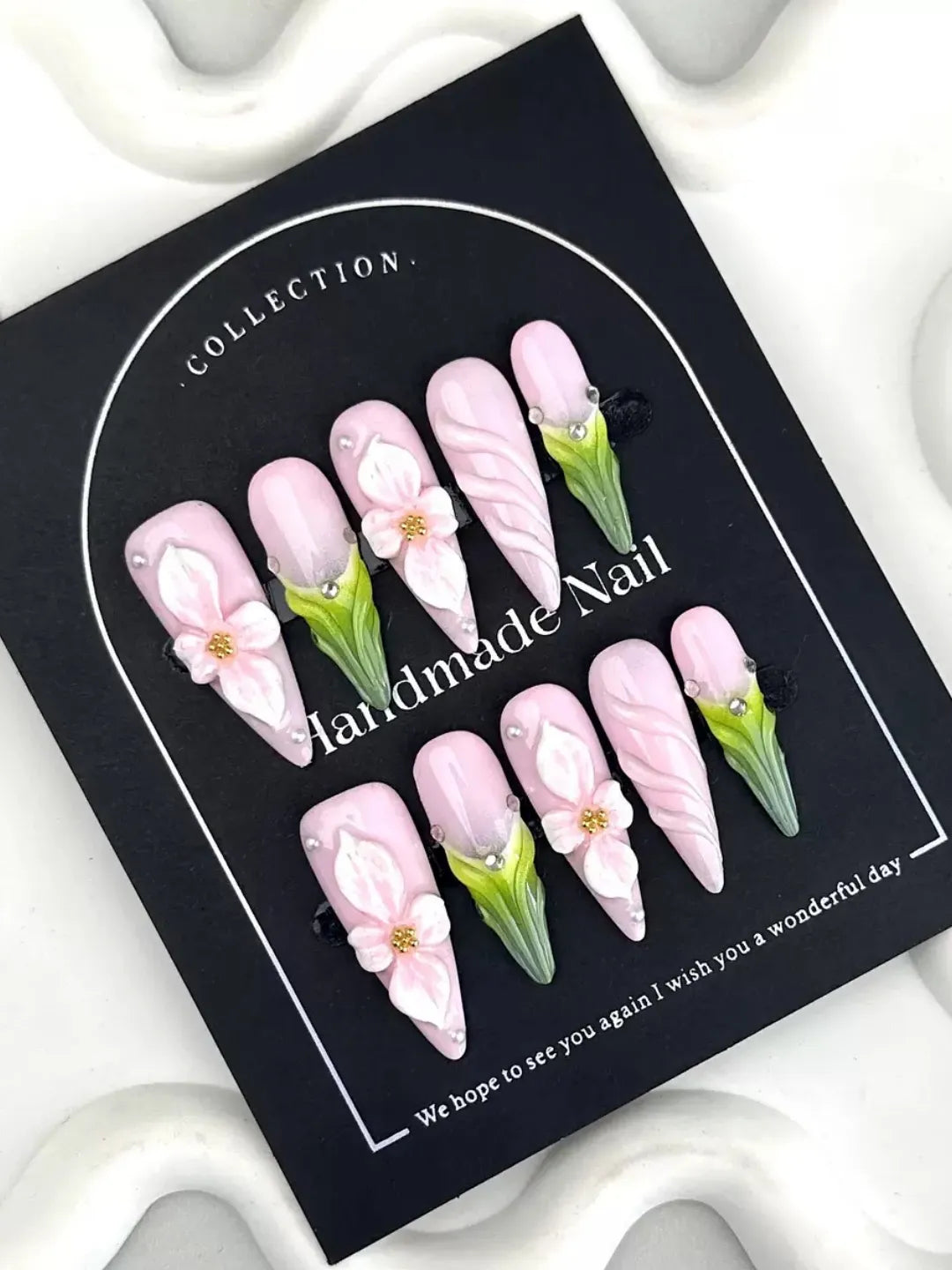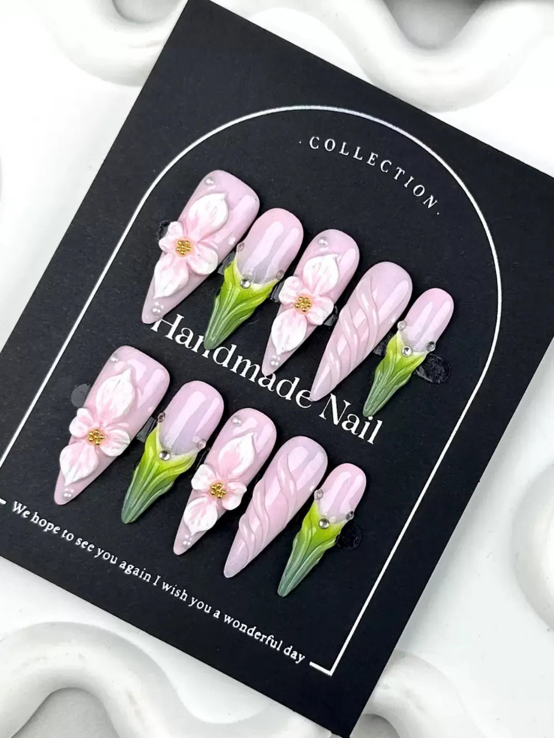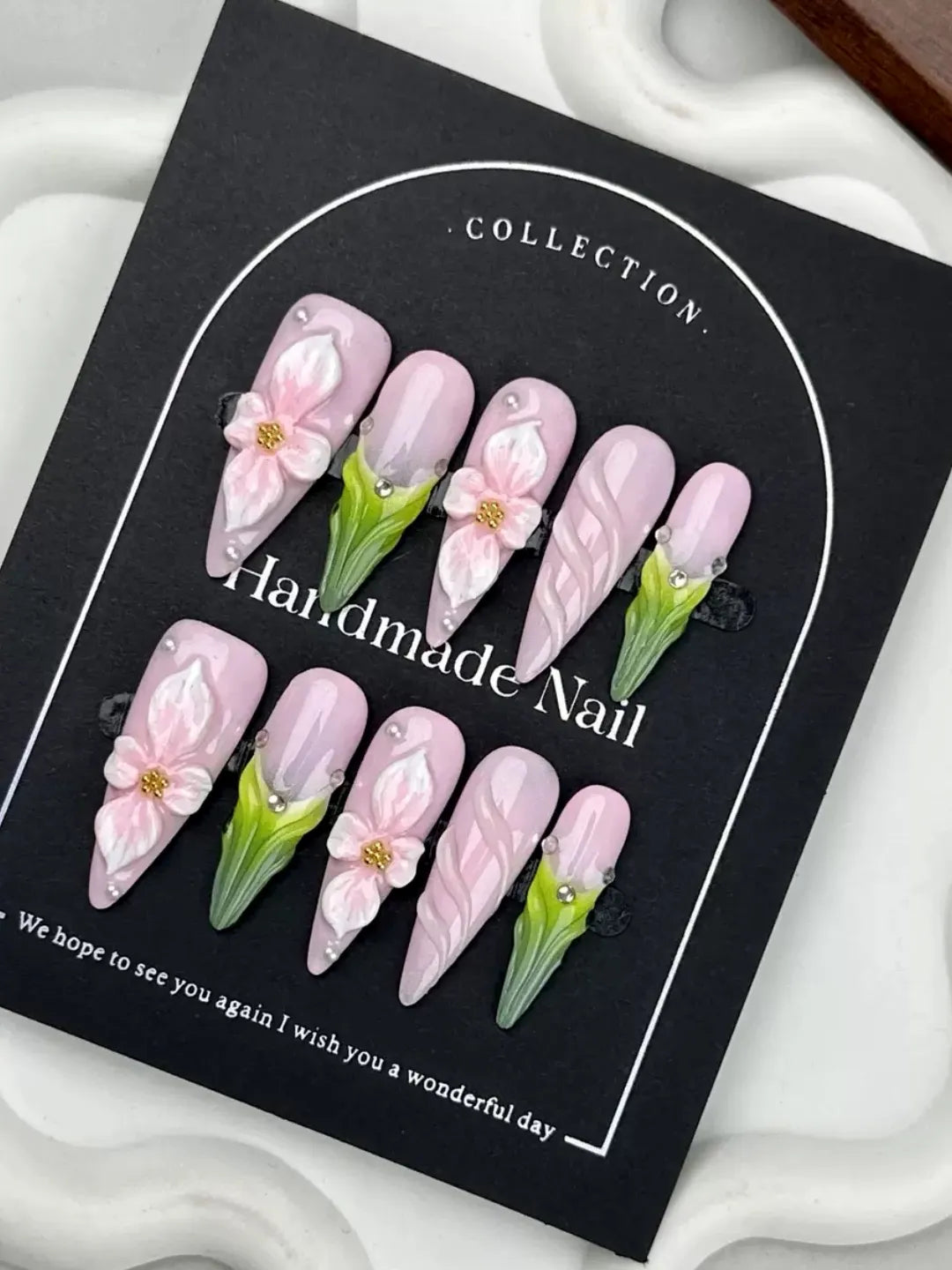 Gradient Carve nails combine soft color transitions with 3D carved designs, creating a gentle yet artistic look that radiates elegance and sophistication.