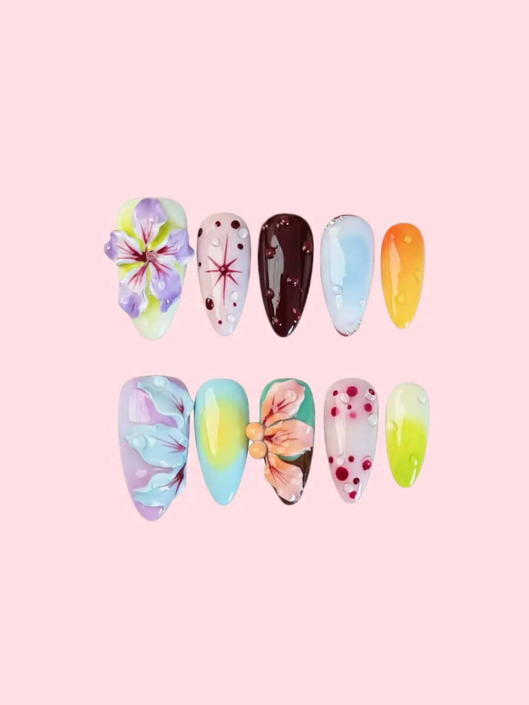 Hand Carved nails feature delicate 3D sculpting, each detail handcrafted with precision, creating a refined and artistic look that highlights feminine elegance.