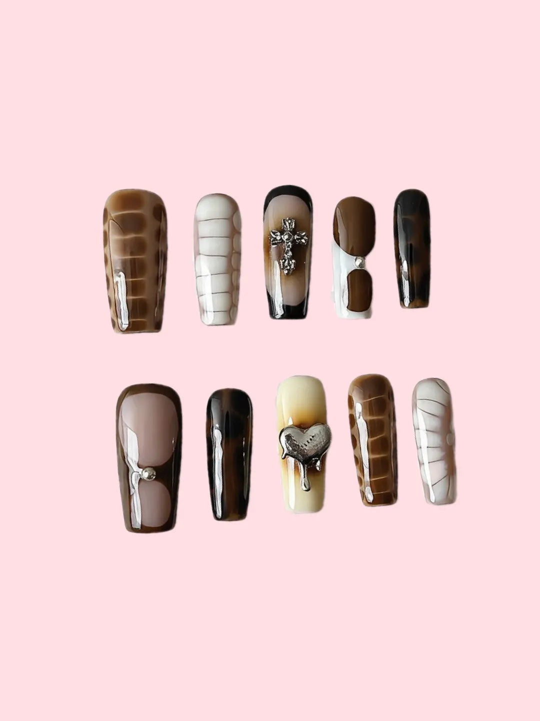 HAUTE MOCHA SKIN nails feature warm mocha tones, handcrafted long T-shaped nails, elegant and chic, perfect for everyday or spring-summer dates.