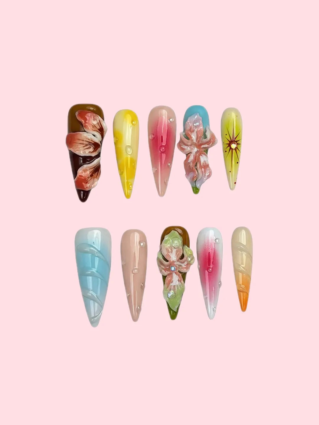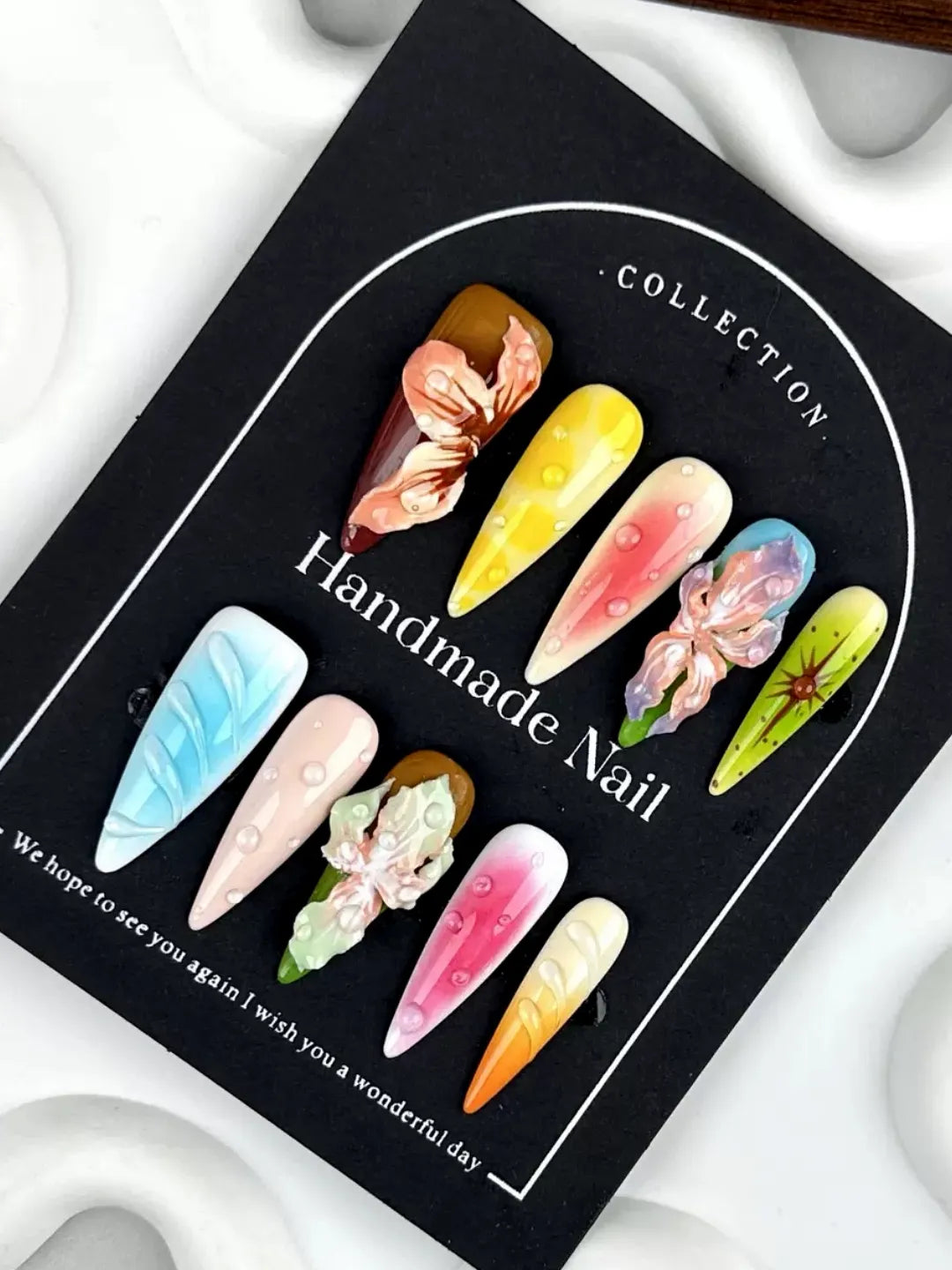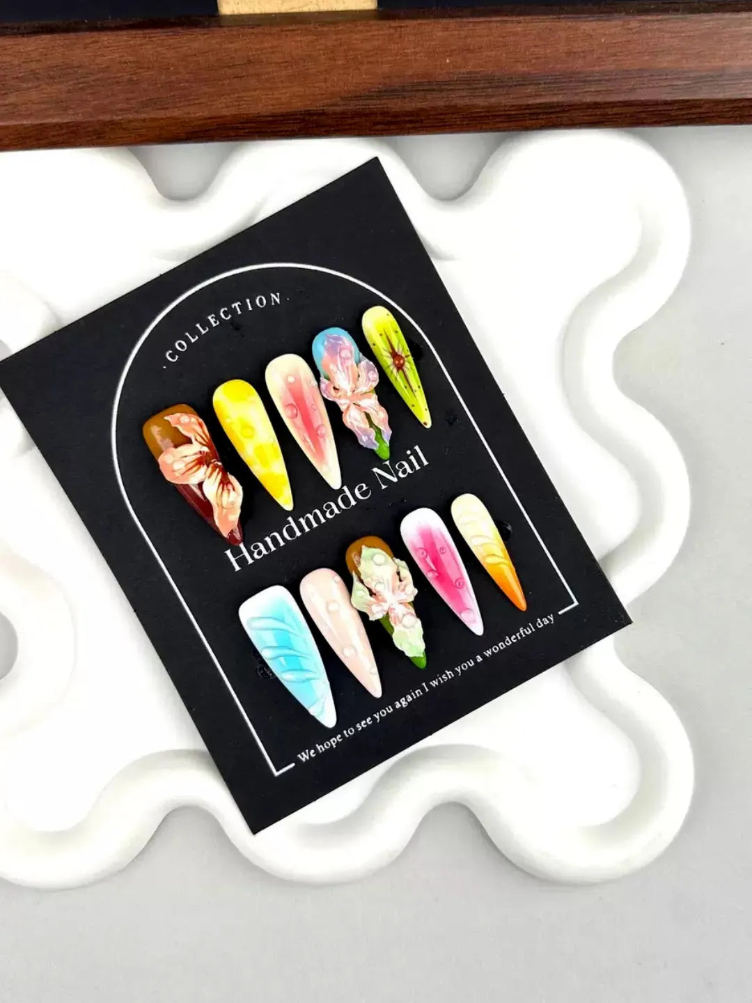 Luxury Carve nails feature intricate 3D hand-carved designs, finely detailed and layered, creating an elegant and artistic look.