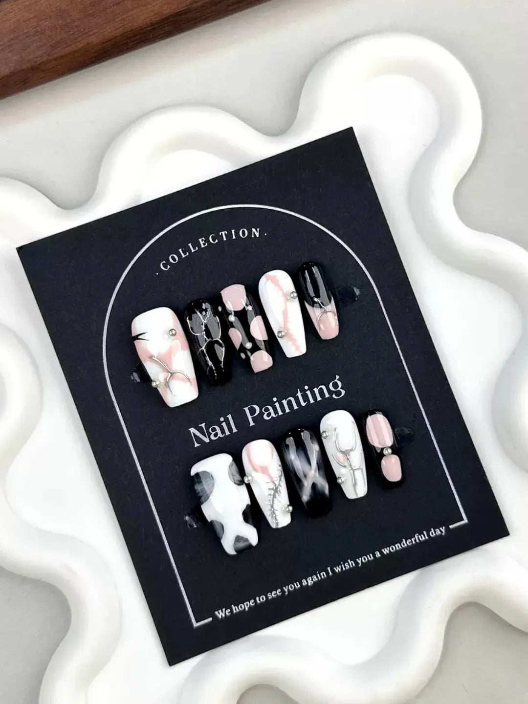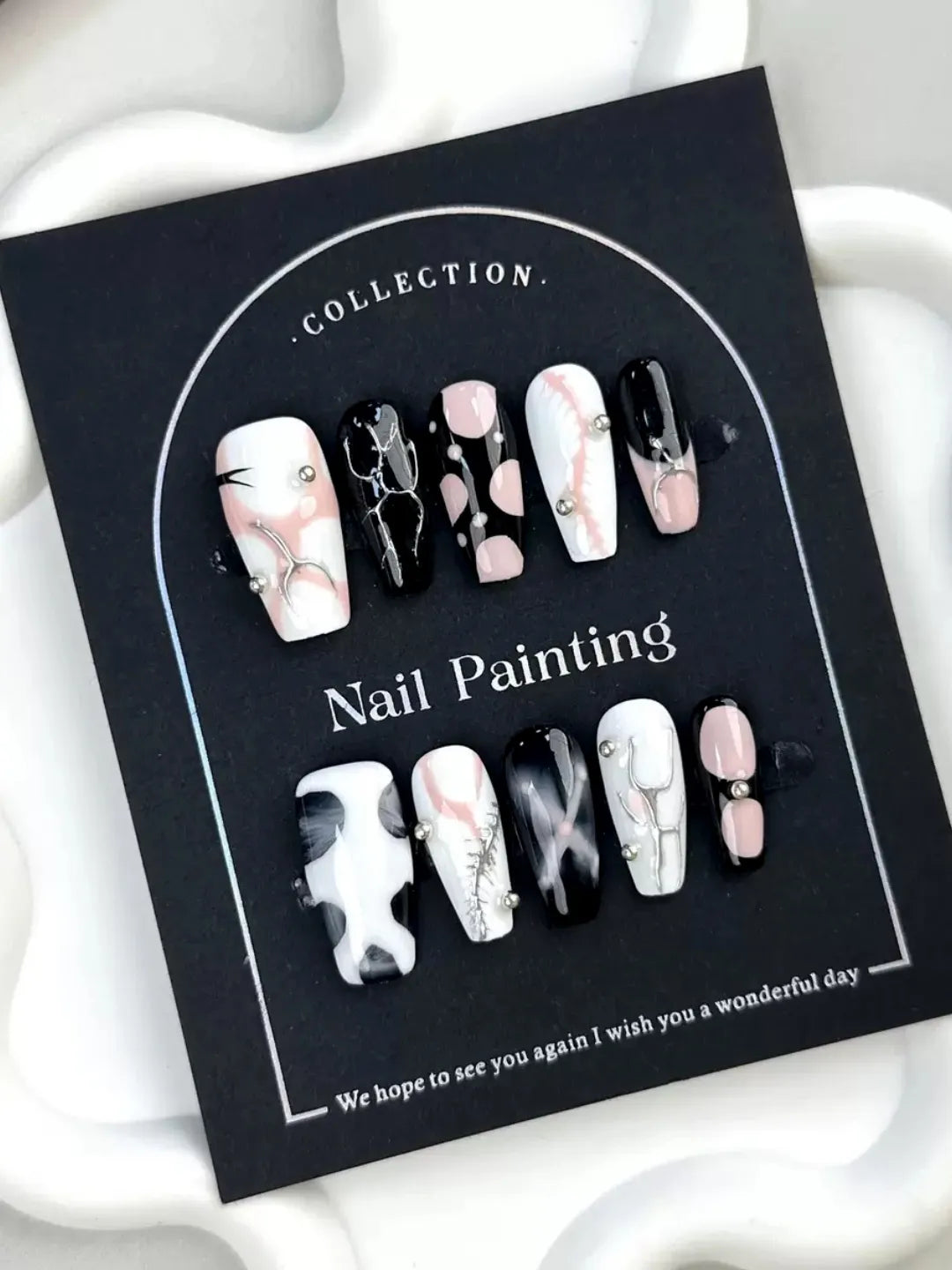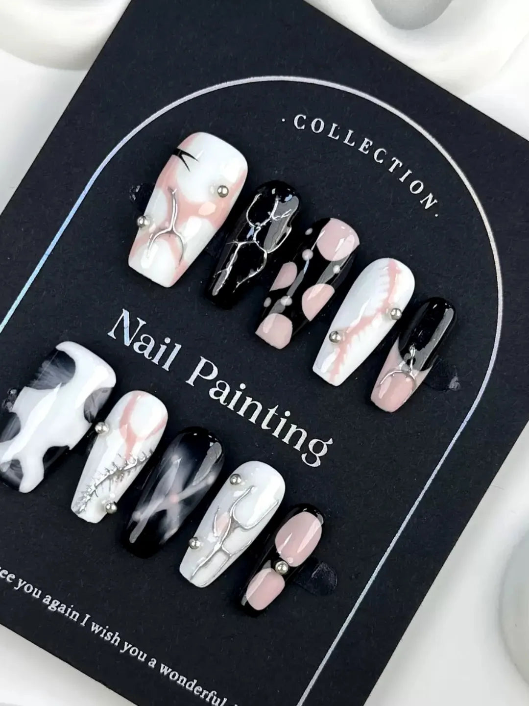 Dark gradient or color-blended ombré base with punk-inspired accents, edgy and bold — perfect for daily wear or parties.