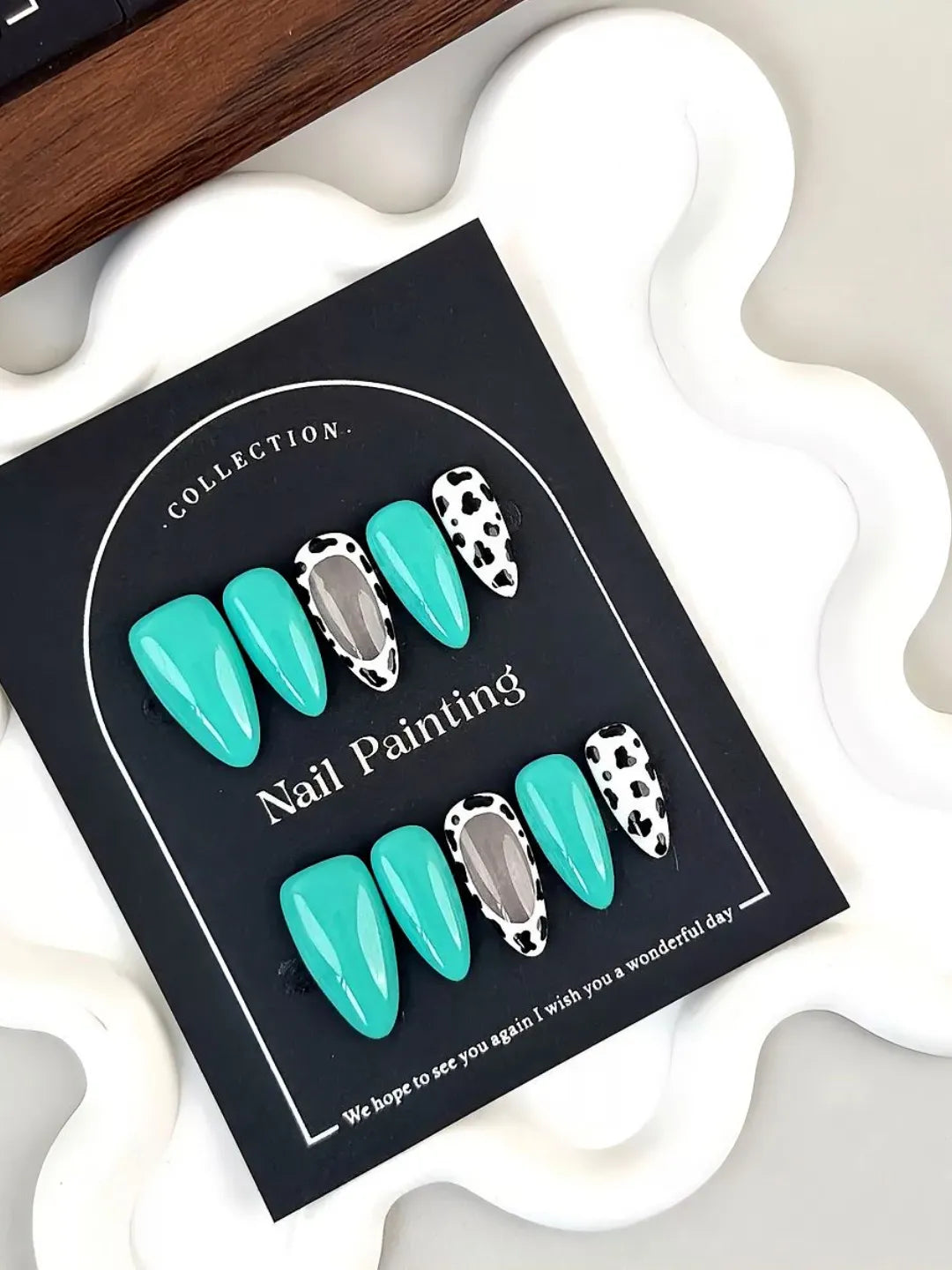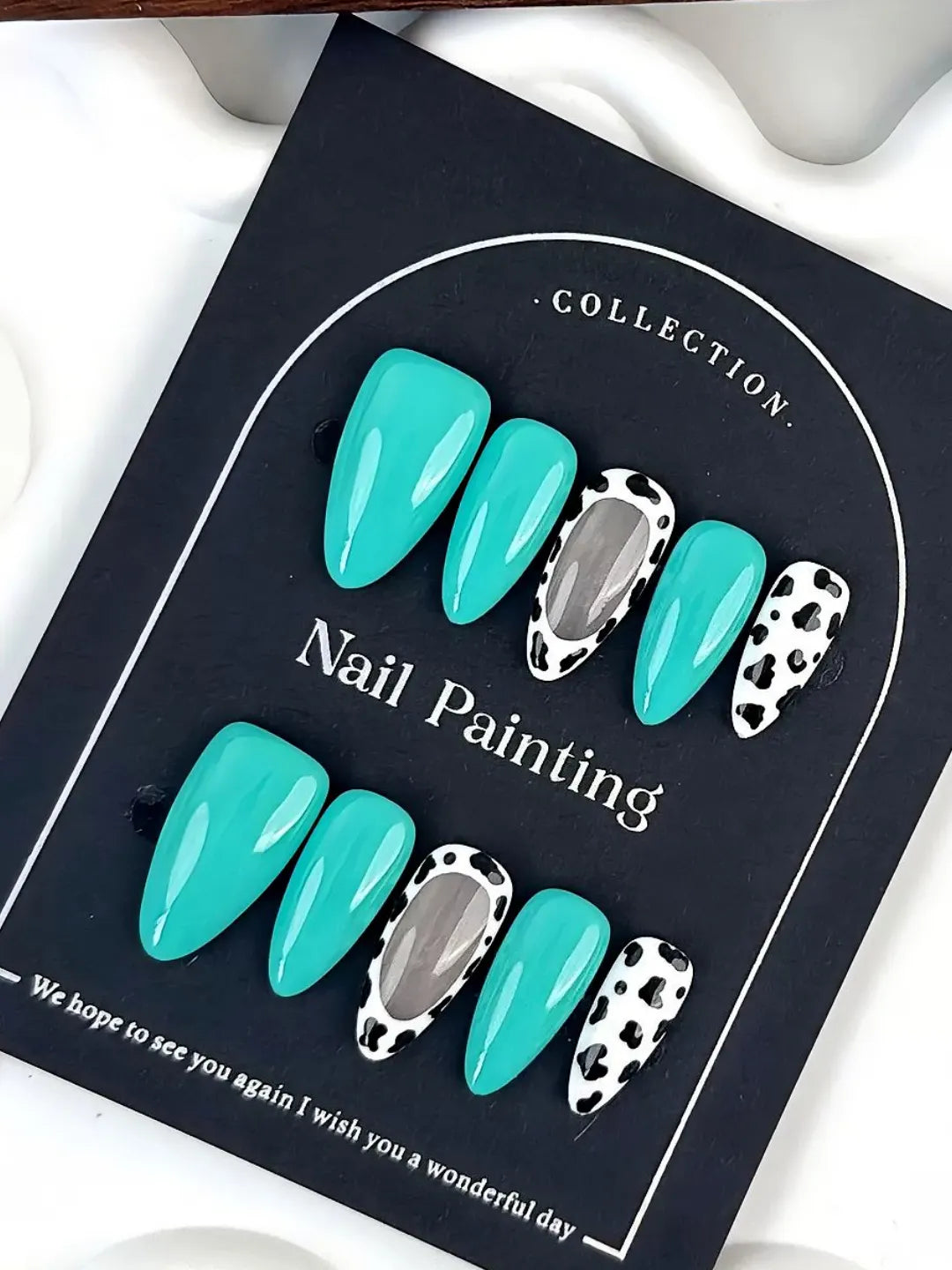 Solid Leopard nails feature soft solid tones with subtle leopard accents, simple yet stylish, perfect for everyday or office wear with elegant confidence.