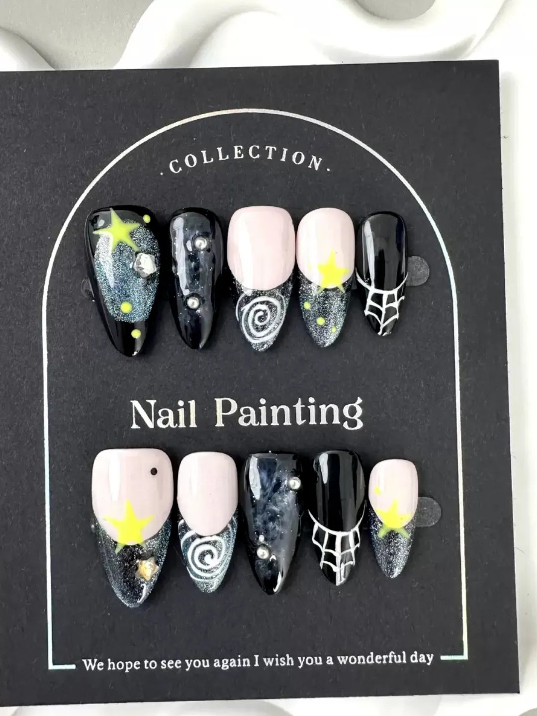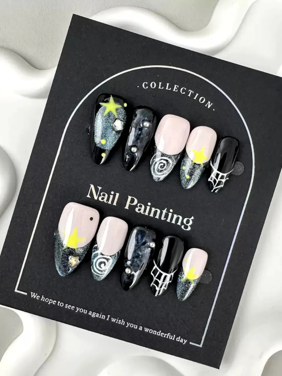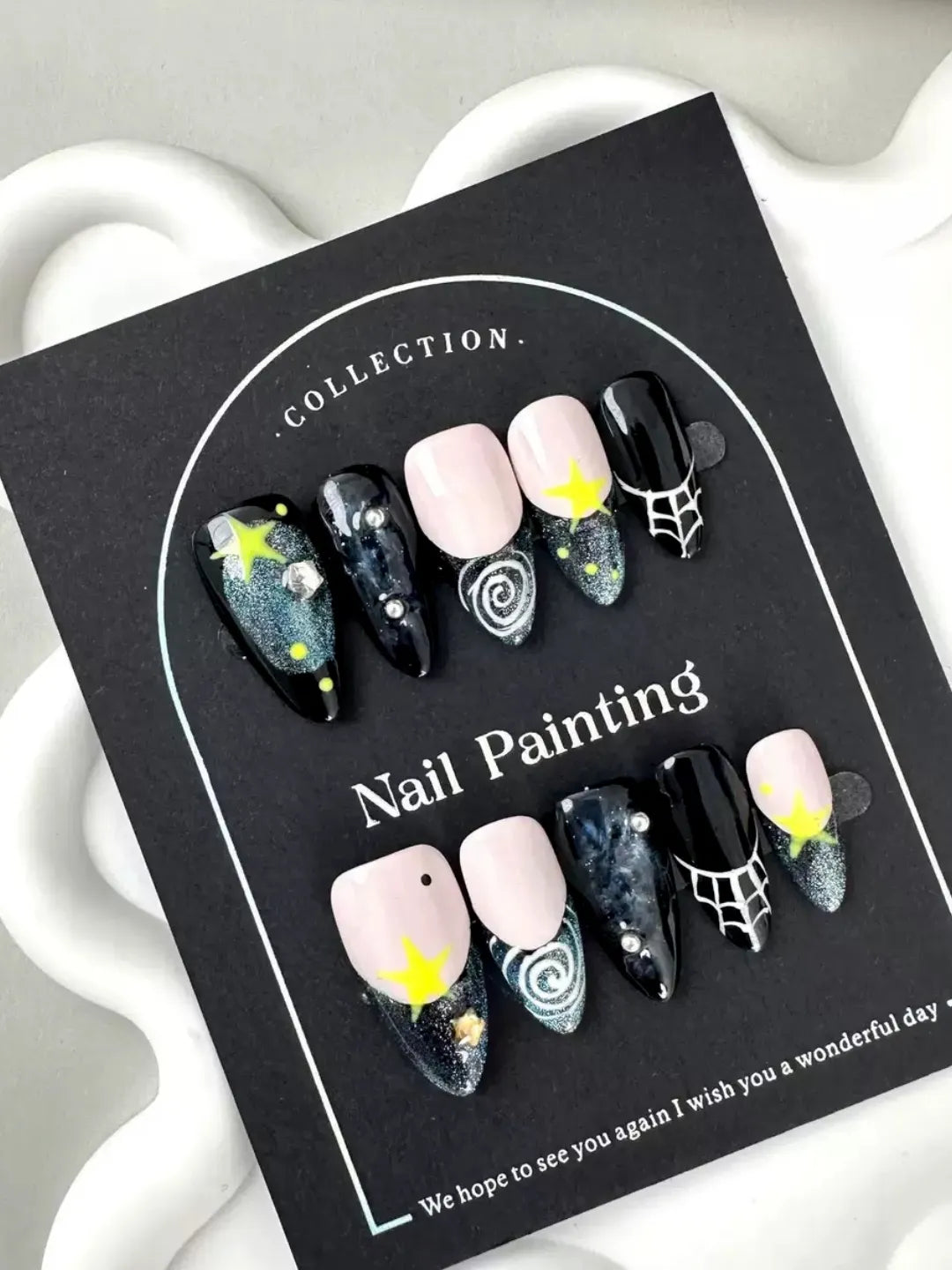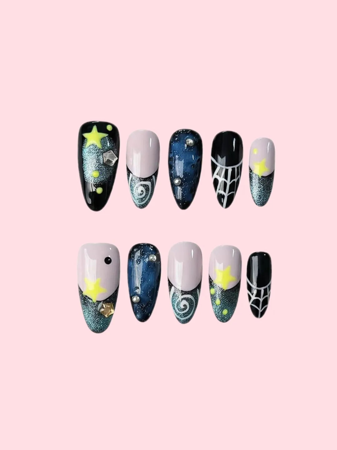 Deep blue gradient base with sparkling stars and subtle shimmer, dreamy and romantic — perfect for daily wear or parties.