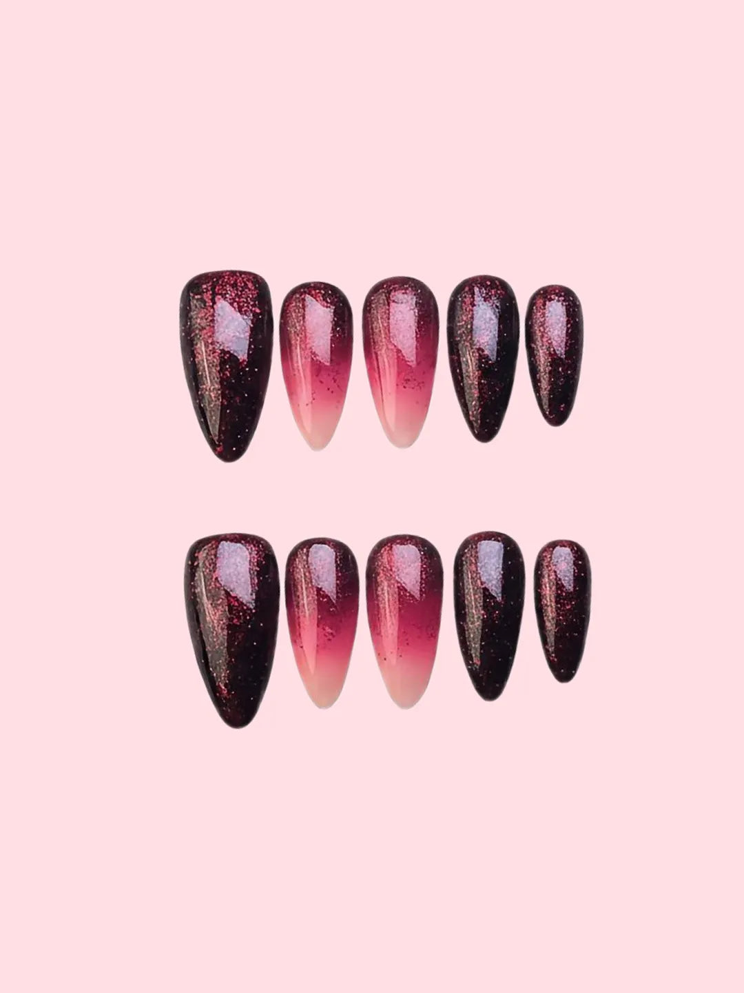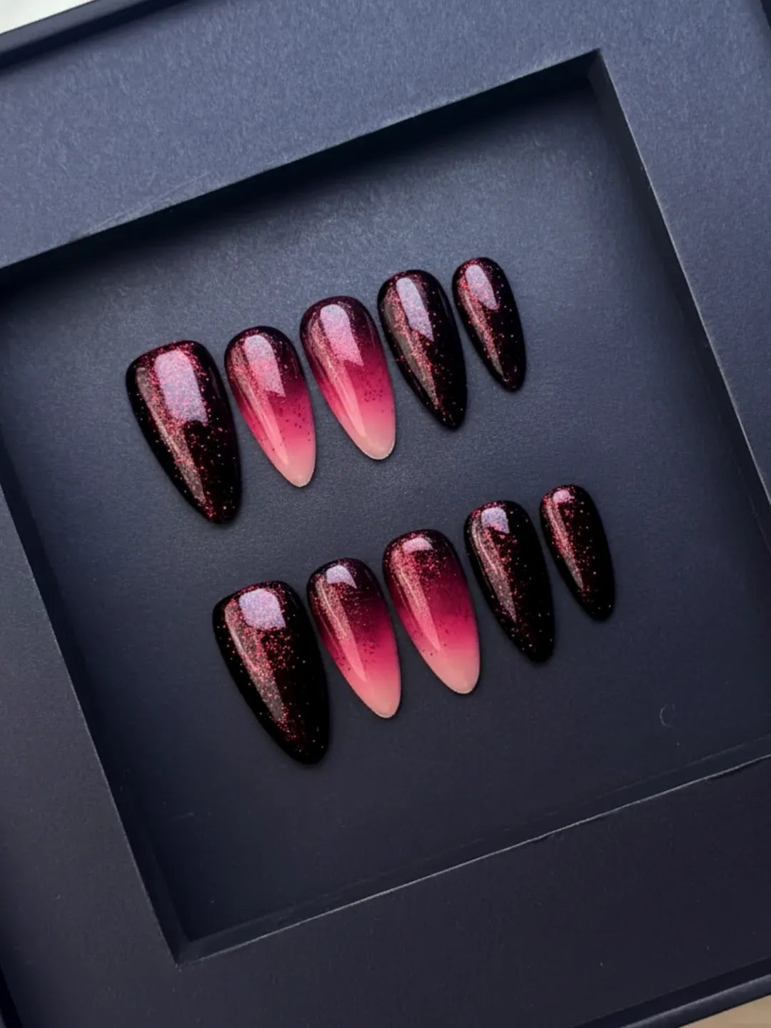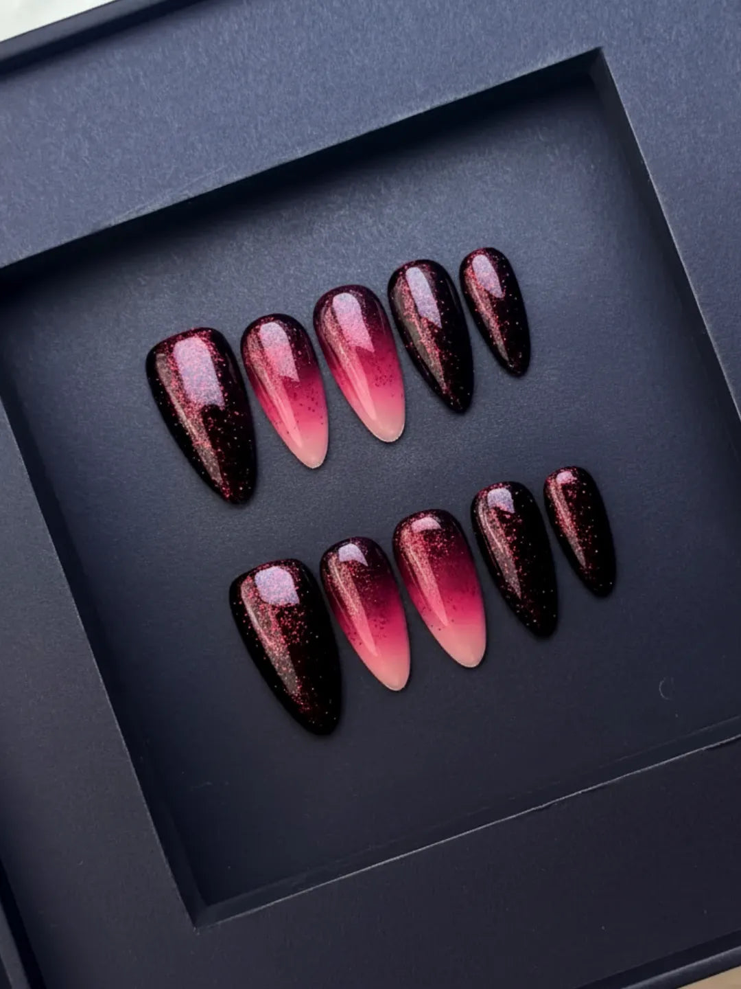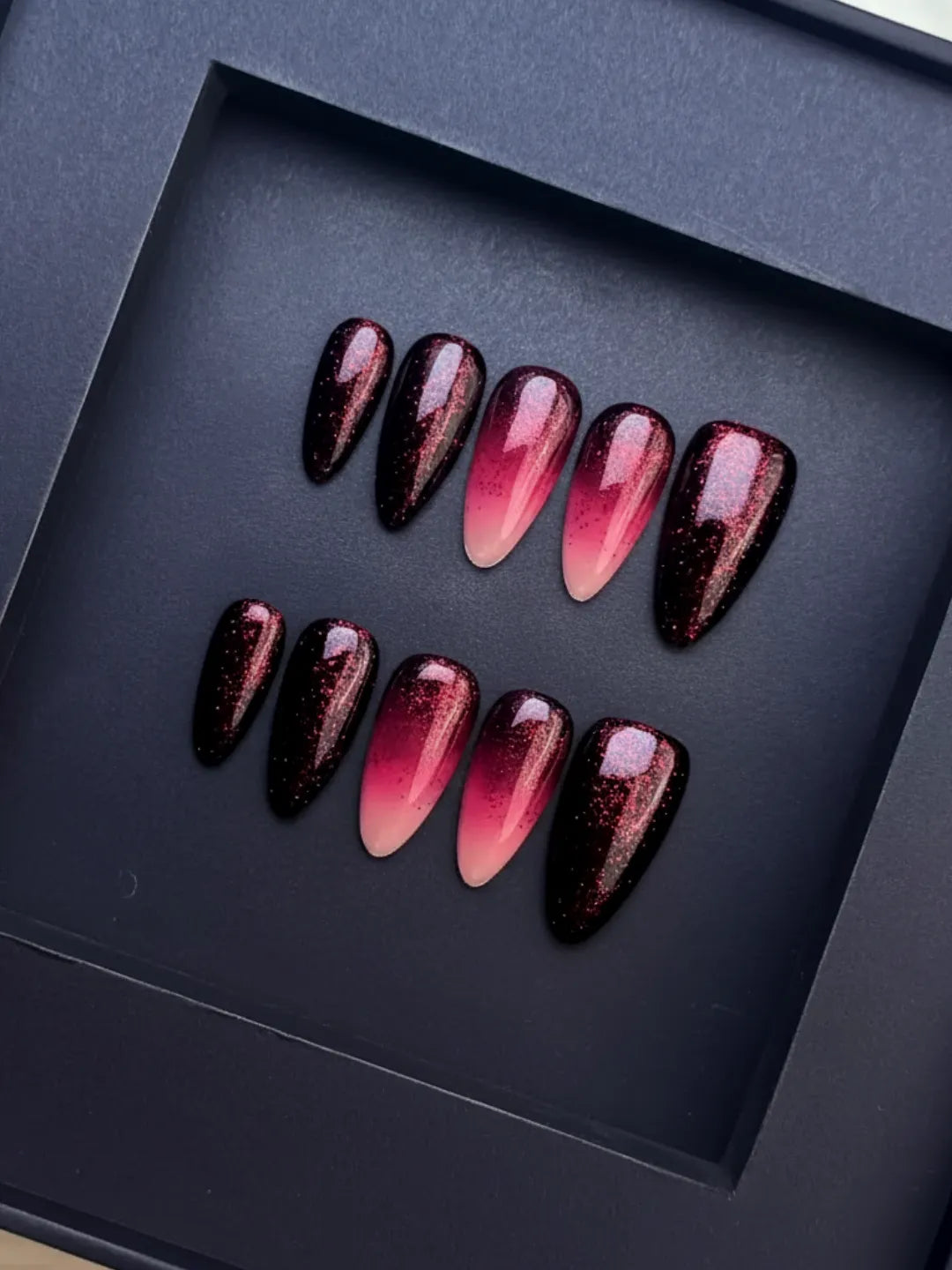 Sweet Edge nails blend soft pink with darker tones, creating a striking contrast — perfect for daily wear or dates, soft yet edgy.