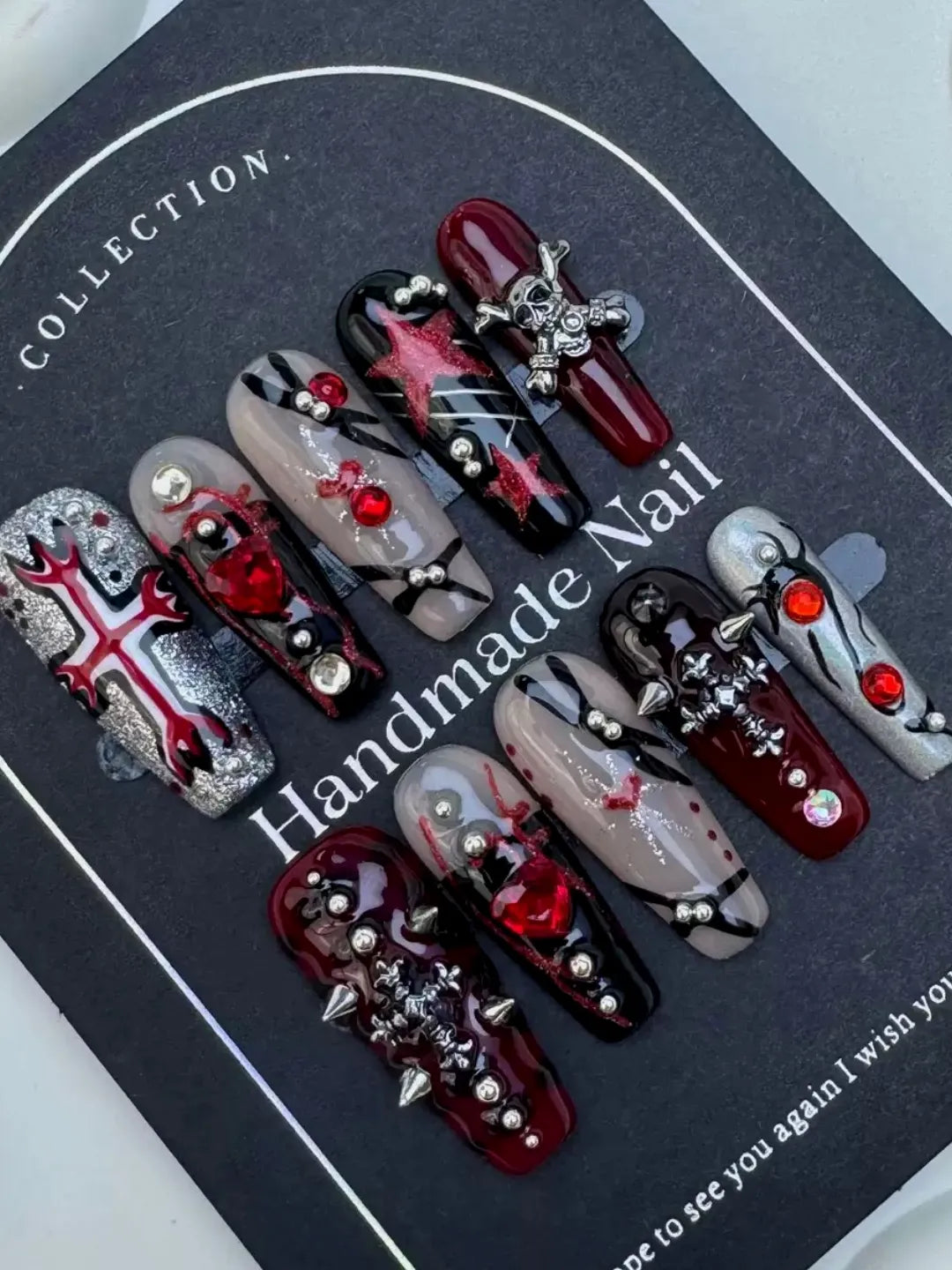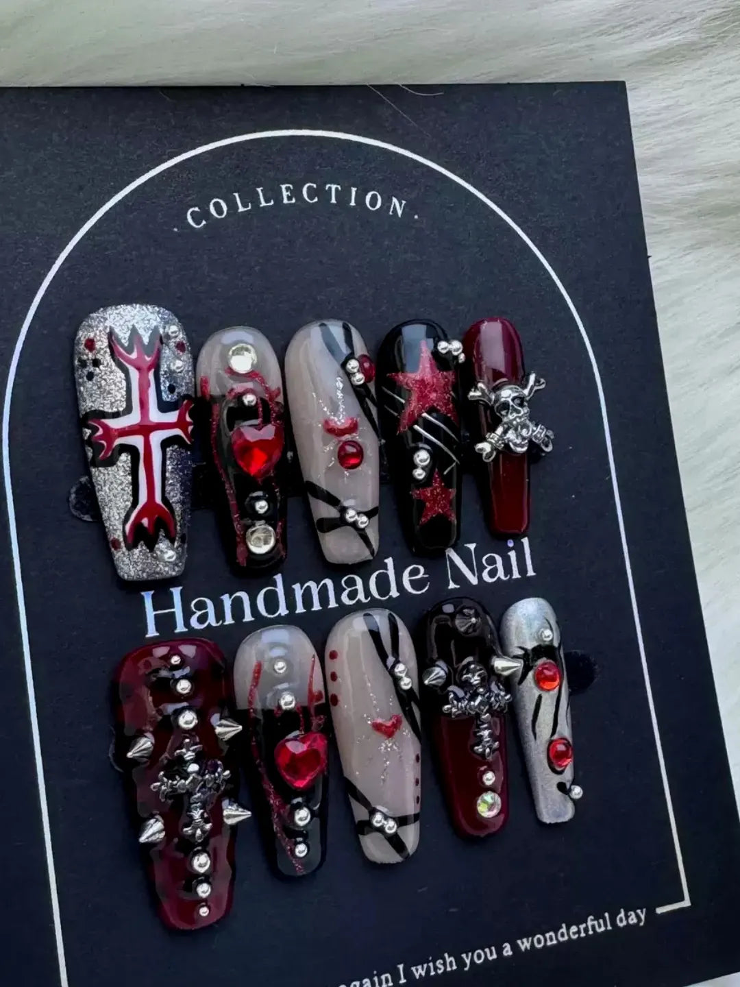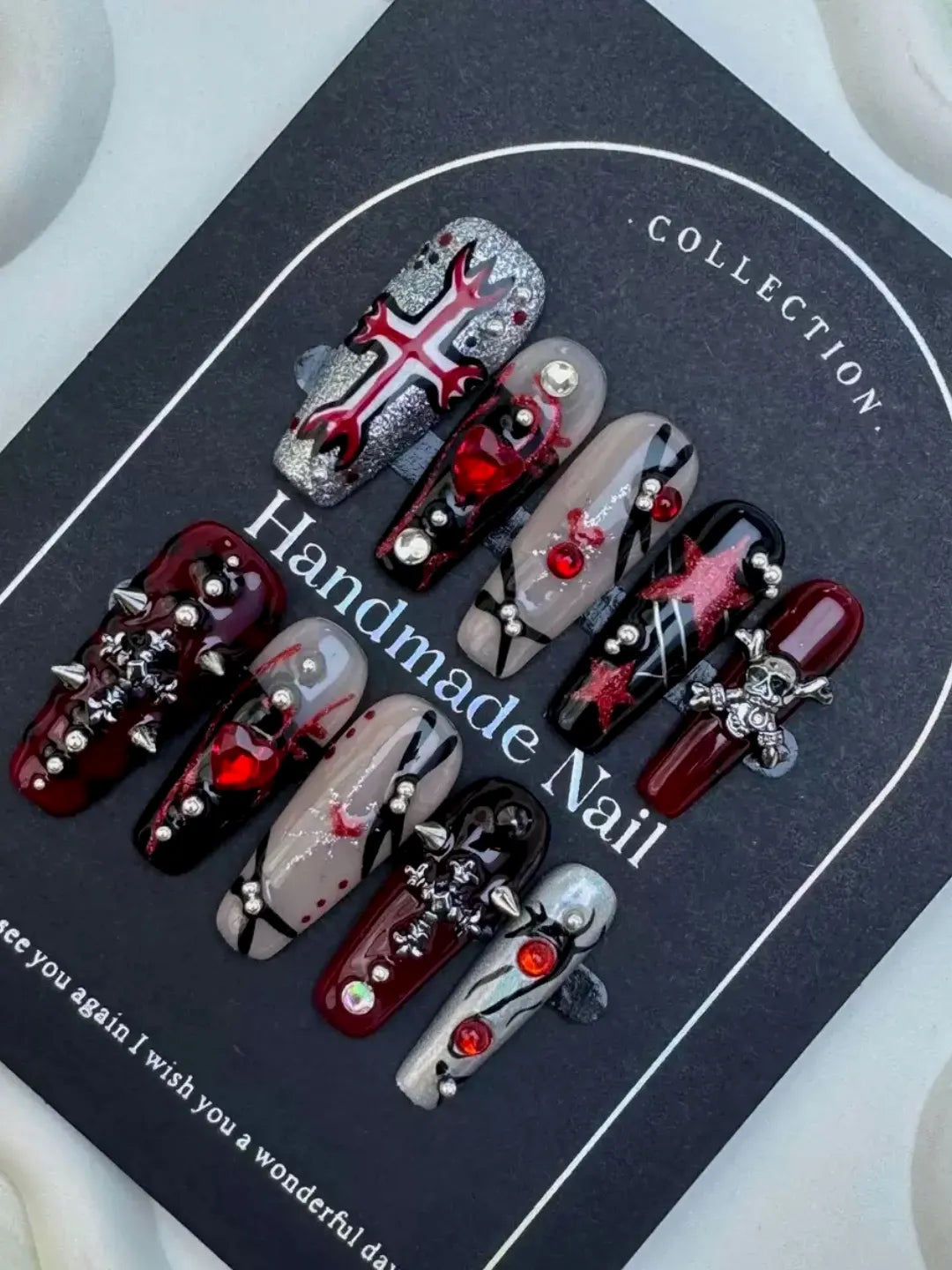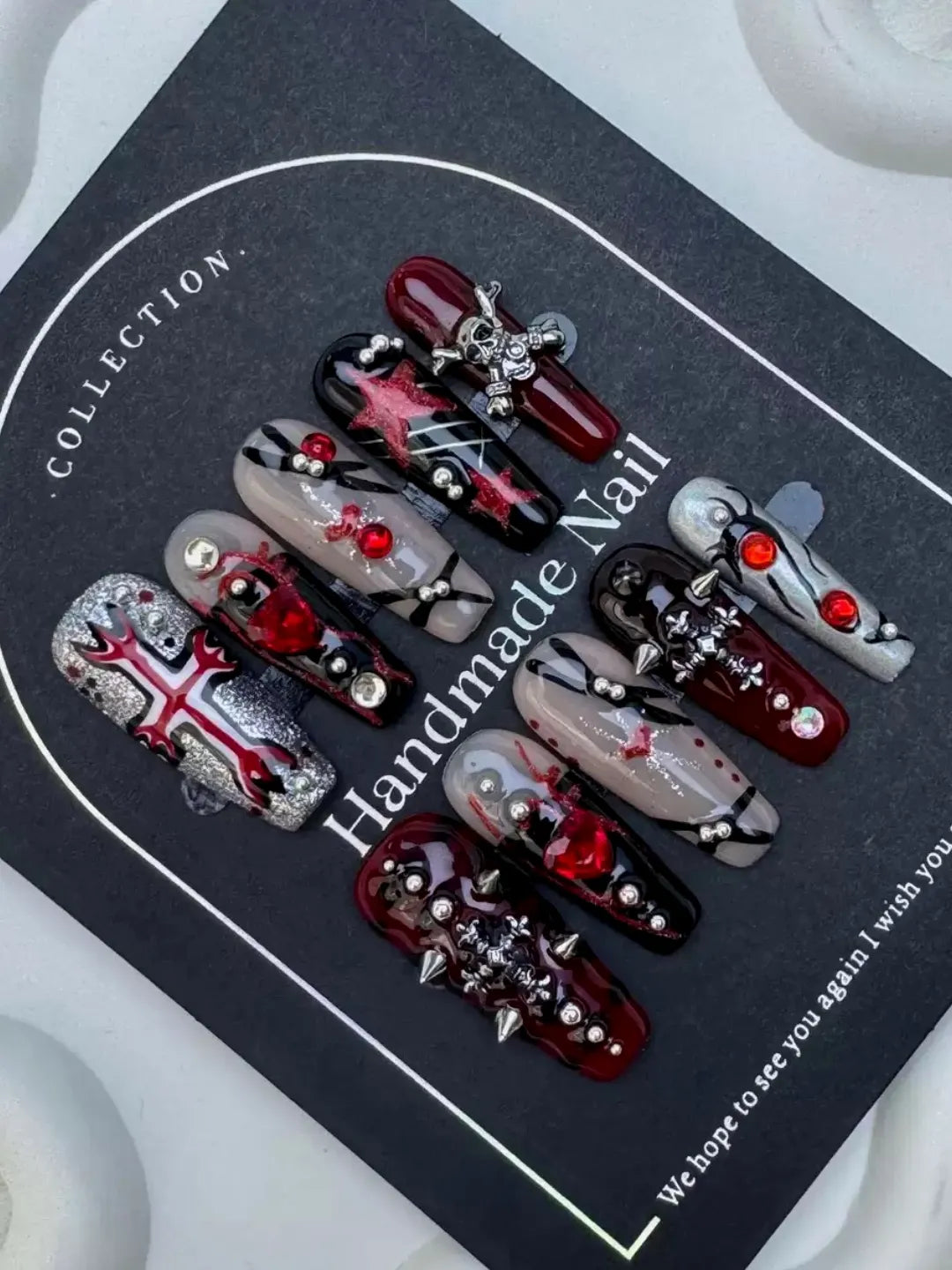Dark or brown gradient base with hand-painted vintage spider and subtle shimmer — mysterious, artistic, and perfect for daily wear or Halloween parties.