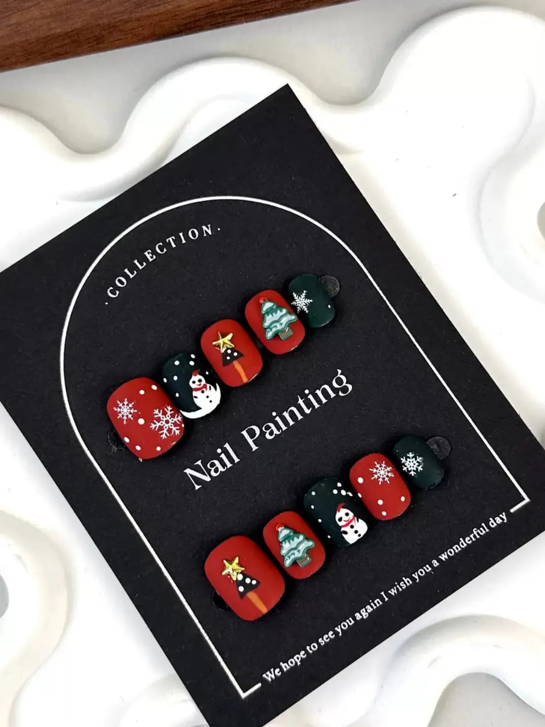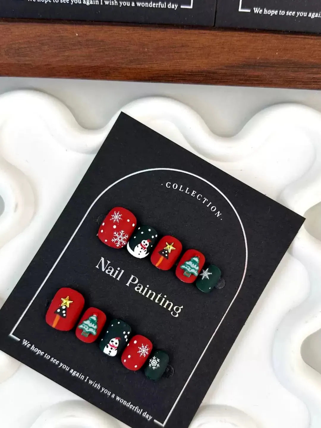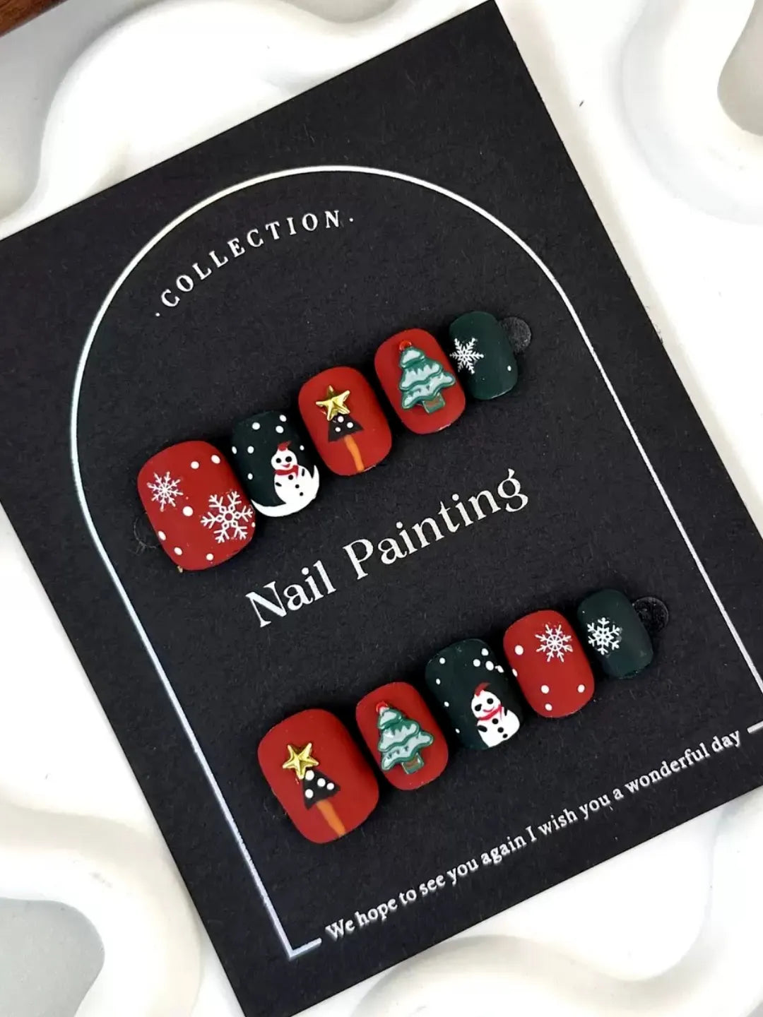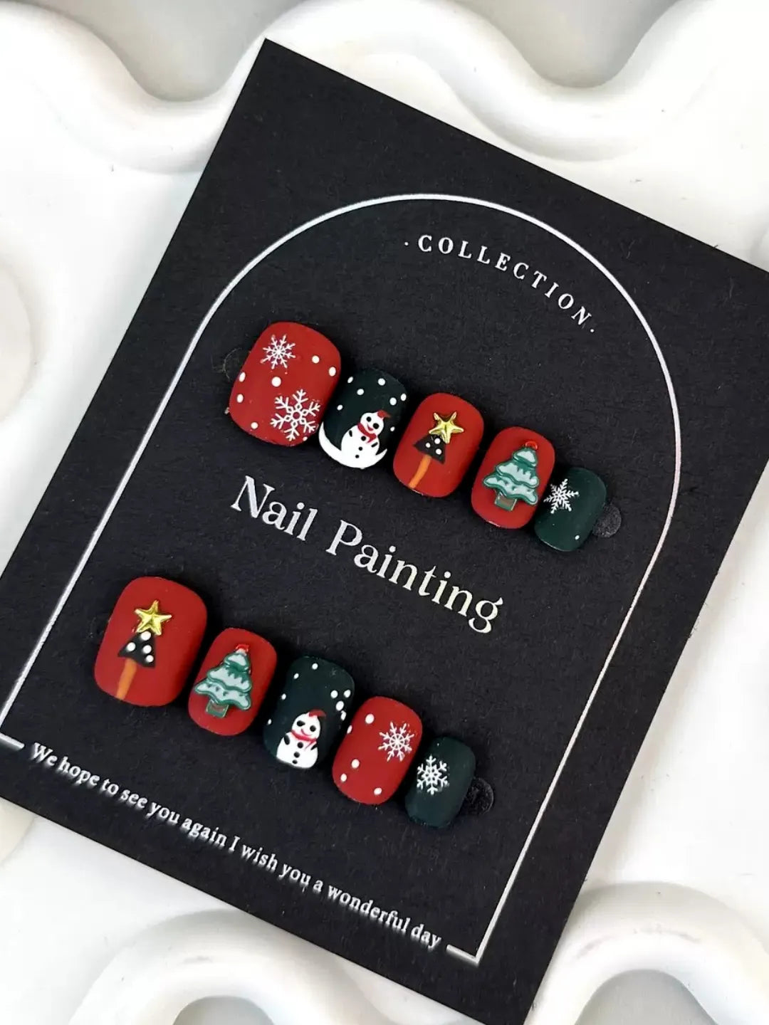 Winter Christmas nails feature red, green, and gold gradients, cozy and festive, perfect for daily wear or parties, adding holiday warmth to your fingertips.